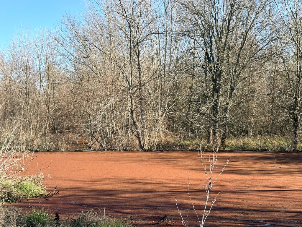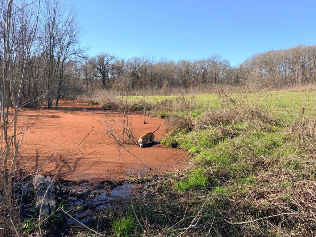 That was actually duckweed on a big ole beaver pond! To say I was excited would be an understatement. The dog was also excited and immediately went swimming.