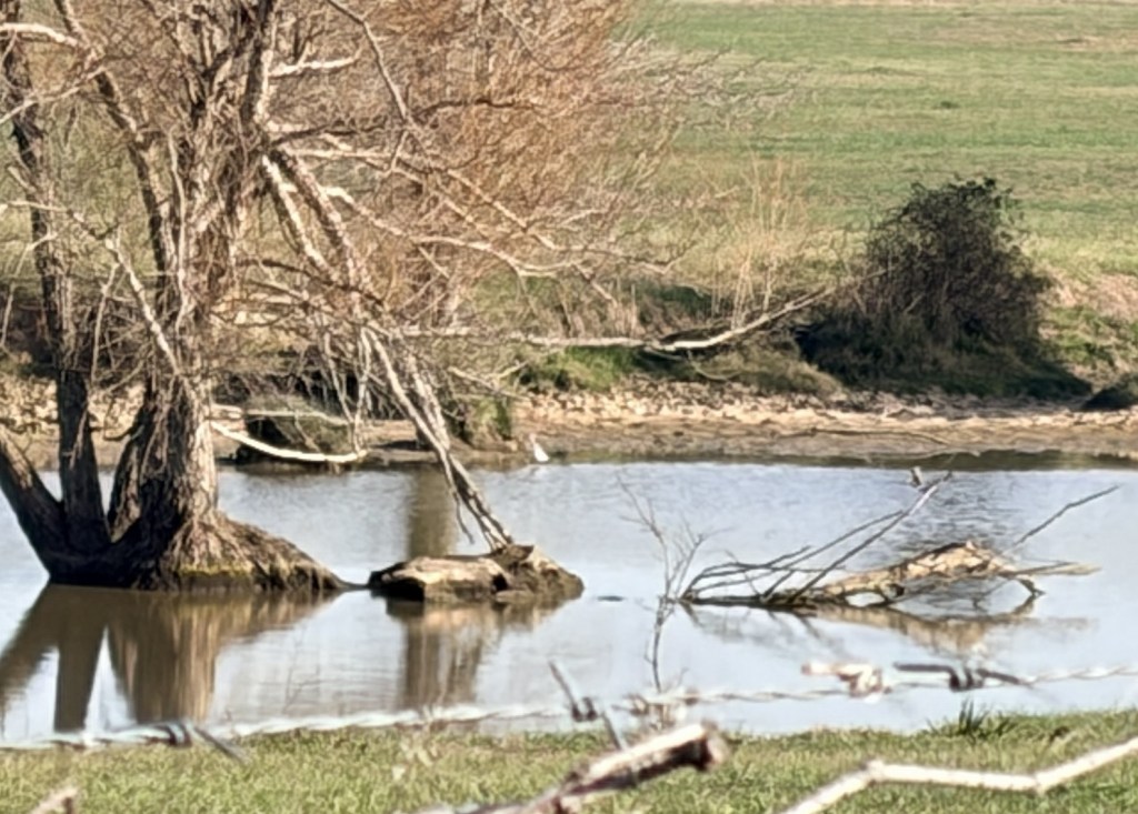 The natural world greeted me as soon as I woke up on New Year’s morning. I looked out the side window and saw a large bird walking along the pond shore, of which there is a lot, thanks to inadequate rain. What was it?