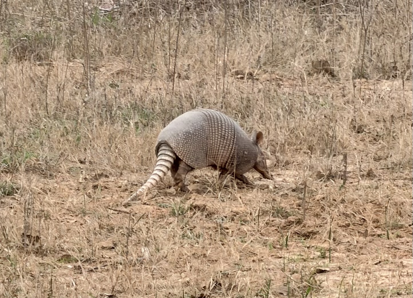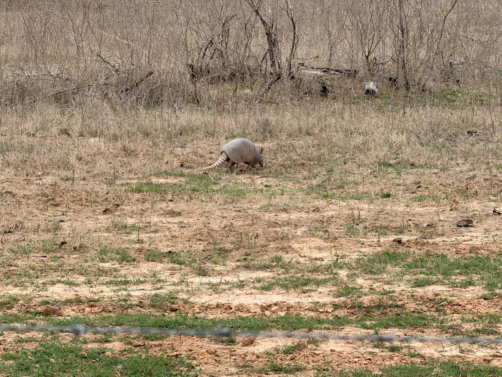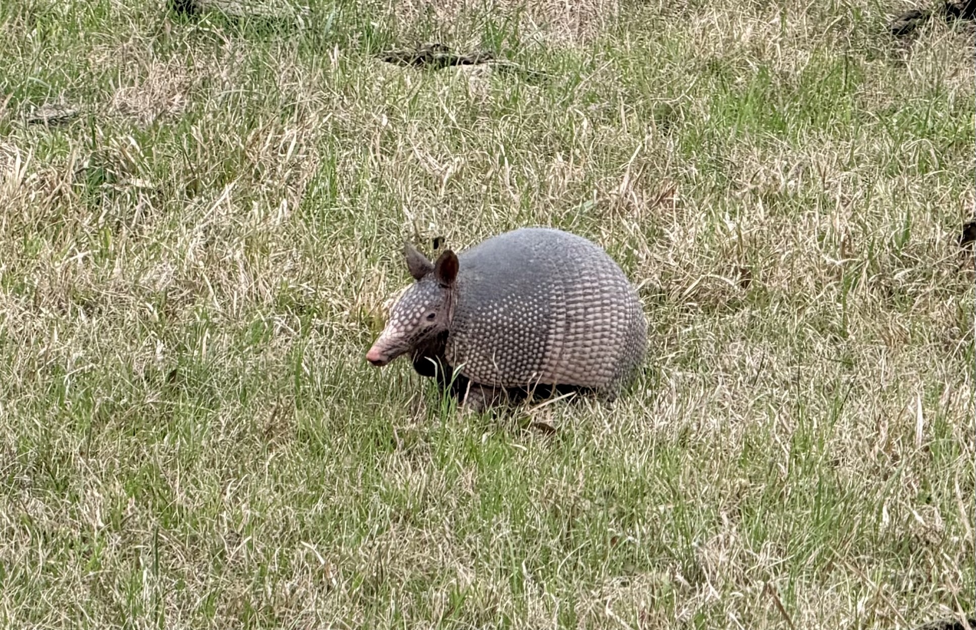 We found more than plants! The resident armadillos were wandering around, we saw a deer, and we got to watch ED feed the big catfish in the ponds. Plus, the cattle followed us around hoping for treats for quite a while. They’re very friendly.
