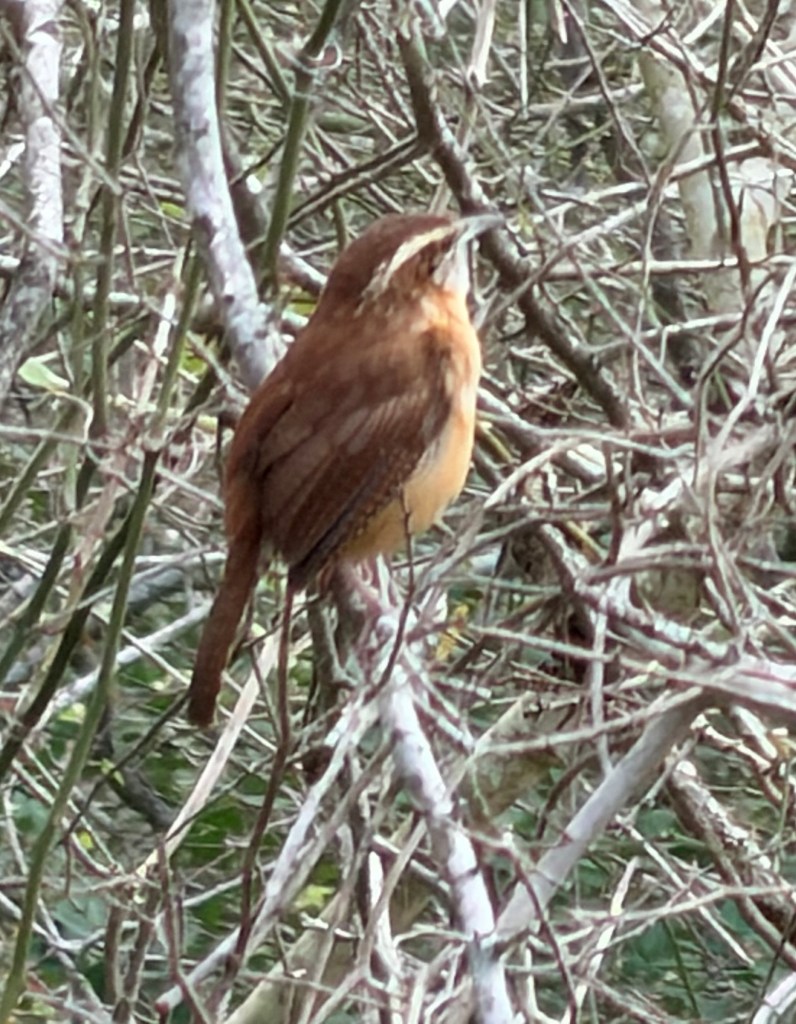 I took a short walk in the morning and was able to get photos of a few more birds, some of whom I’ve been hearing but not seeing. The light was bad, but I could tell what they were!