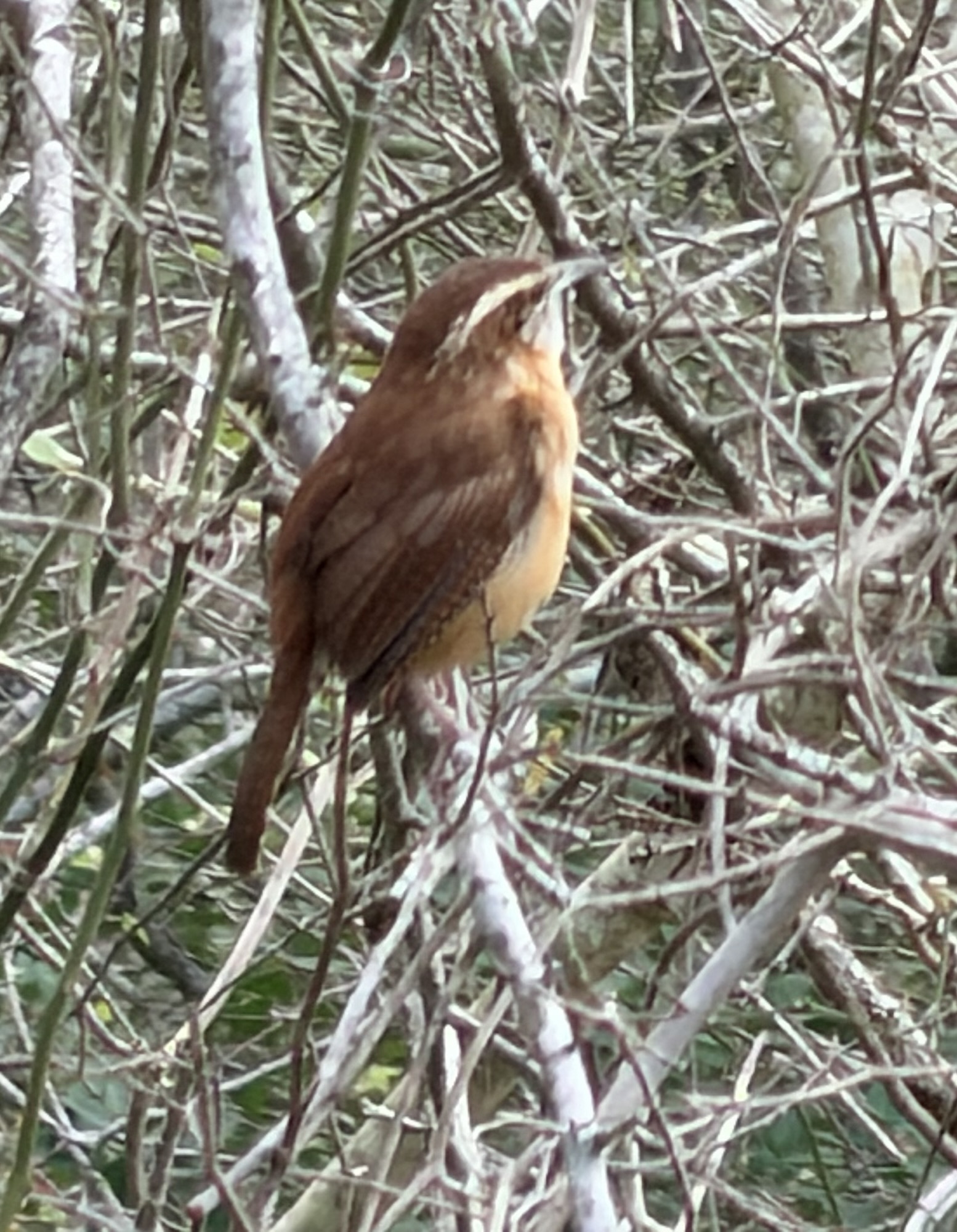 I took a short walk in the morning and was able to get photos of a few more birds, some of whom I’ve been hearing but not seeing. The light was bad, but I could tell what they were!