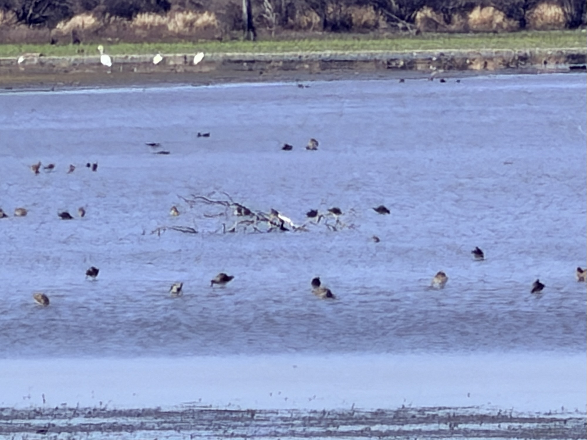 I couldn’t NOT go look at the waterfowl, but I mostly watched ducks dabble and dowitchers dig. Dandy! The Ibises were also present.