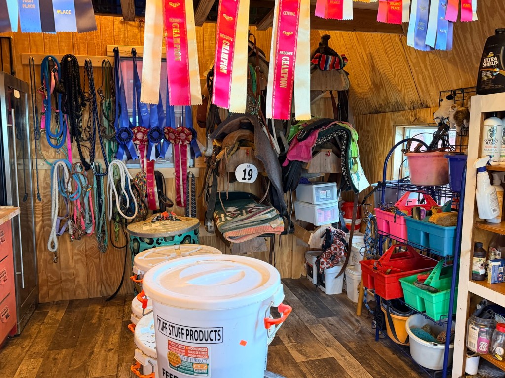 Now for the weird. Kathleen spent all day today cleaning the tack room as only a Kathleen who’s feeling better can clean. When she has energy, she really has it. There’s a distinct lack of mouse and rat poop in the room now.
