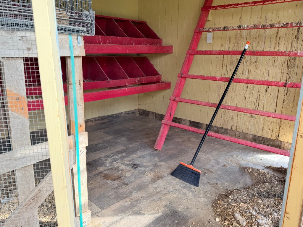 While the wind has been annoying, it’s otherwise been a beautiful weekend full of getting things done at home. Yesterday the chicken house got all cleaned out. That was about time! Kathleen had a fancy mask so she didn’t get sick like I did the time I did it by myself.