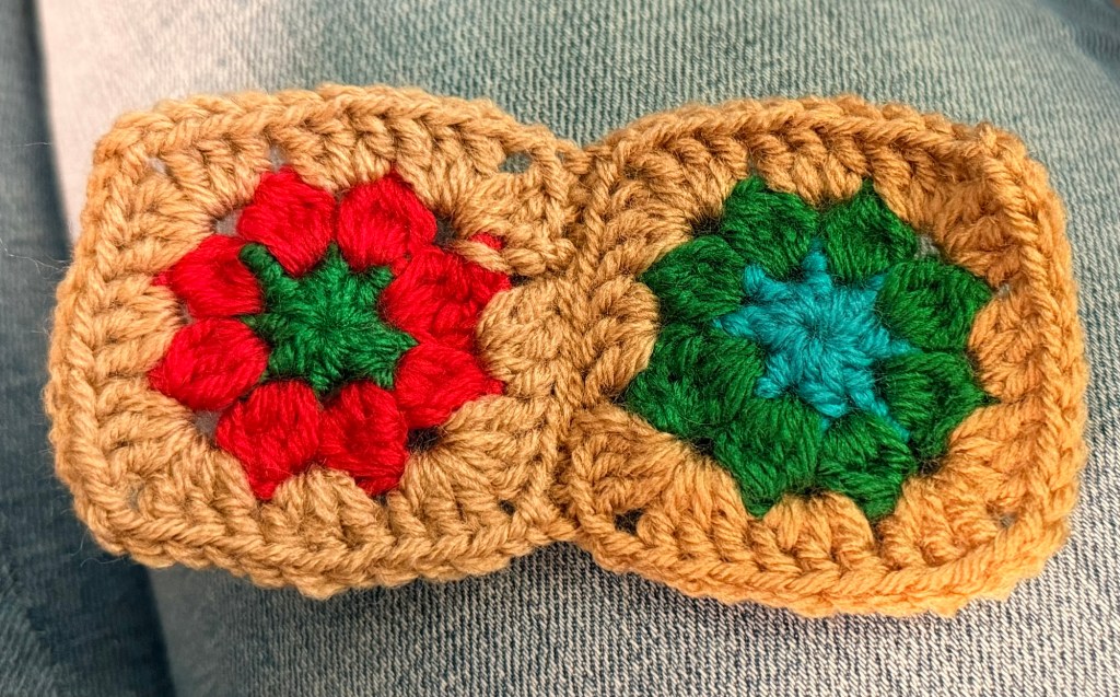 The best thing about today was that it made for crazy colors in the temperature blanket. Yesterday was red (90s) and Kelly green (low 50s). Today the green was the high temperature. Tonight it might freeze! This is not usual.
