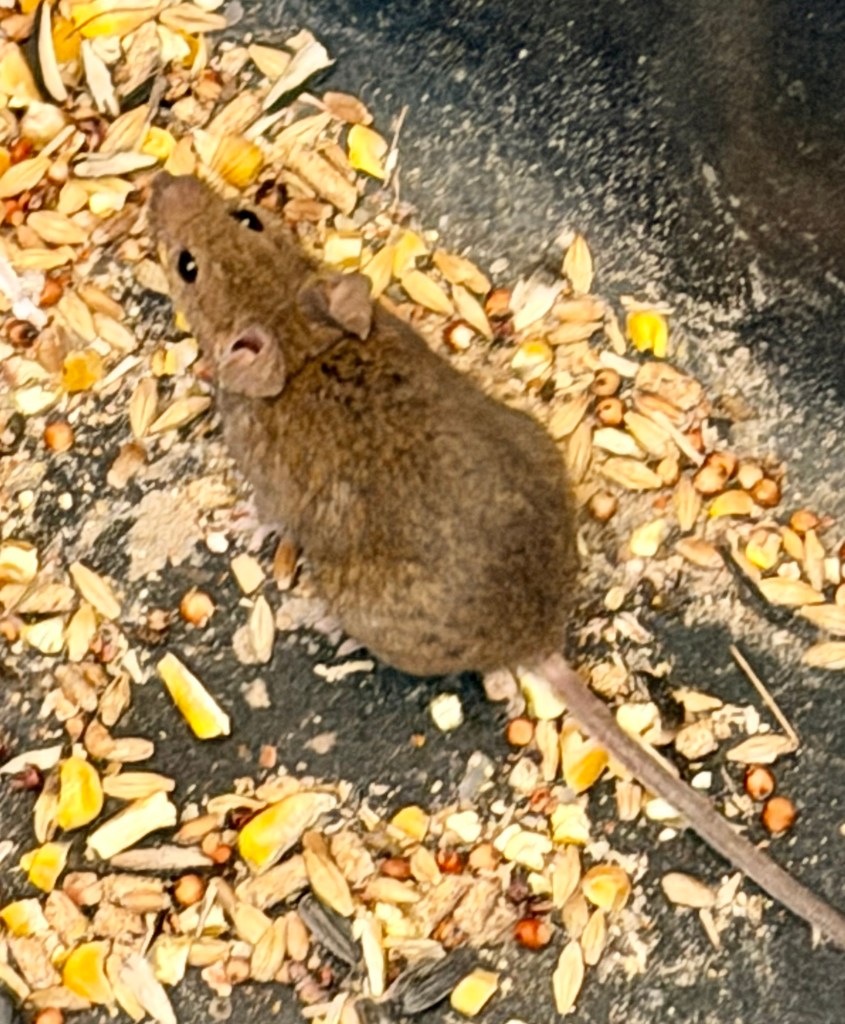 I did NOT take pictures today, so here’s the henhouse mouse.