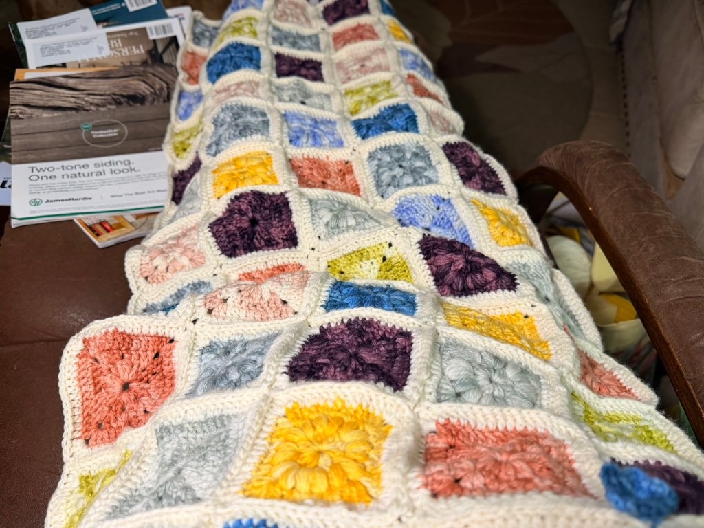 I didn’t mention crafts to her, but hey, five rows of my blanket!