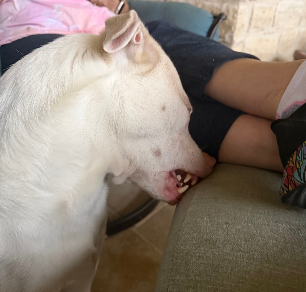 The sun had peeked back out and I was talking to my colleague when the dog alarm went off. It was the UPS truck, featuring the dogs’ favorite visitor, the Treat Man, who also happens to hand Suna boxes before doling out the treats.