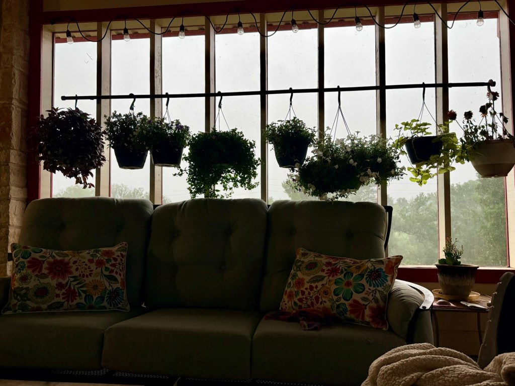 Morning coffee and rain are a fine combination, though we’re hoping the predictions of more rain come true; only ,75” doesn’t raise the ponds/tanks at all.
