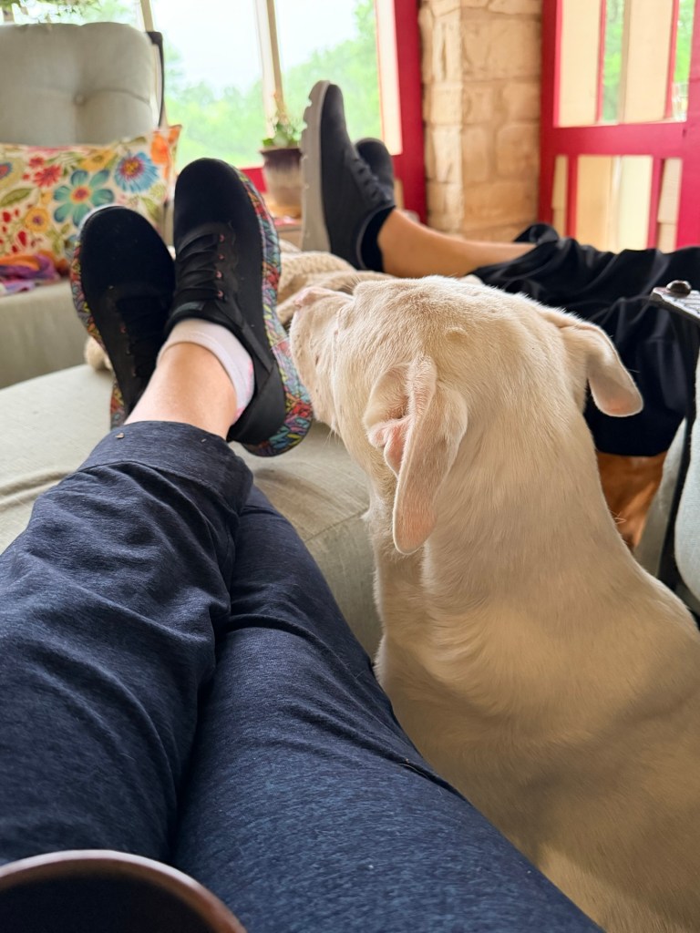 Yes! It finally rained more than a few drops today!I’ve grown weary of the crunchy dead stuff underfoot (though as a bonus, most of the crunch was bur clover that never formed seeds!). Lee, the dogs, and I enjoyed sitting on the porch and listening to the welcome raindrops.