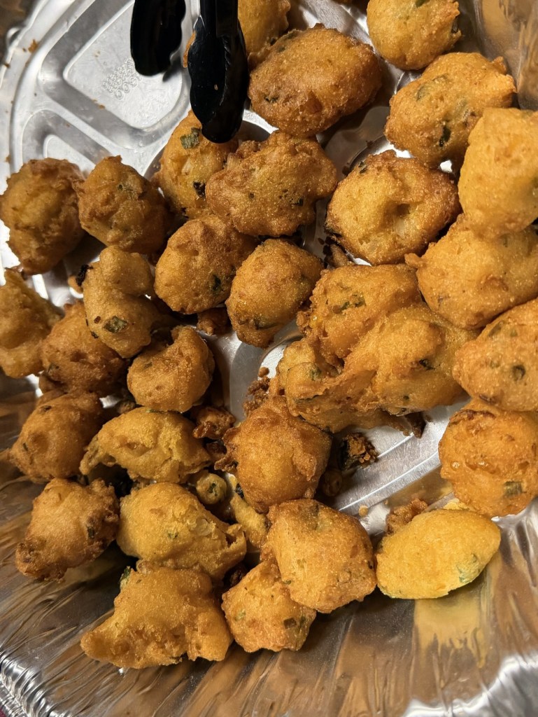 They are golden brown, with a light but crunchy exterior that leads to an explosion of the creamy, moist flavor of green onions, corn, and magic. I had three of them tonight, and I didn’t care if it meant I ate less of the freshly fried catfish and bass.