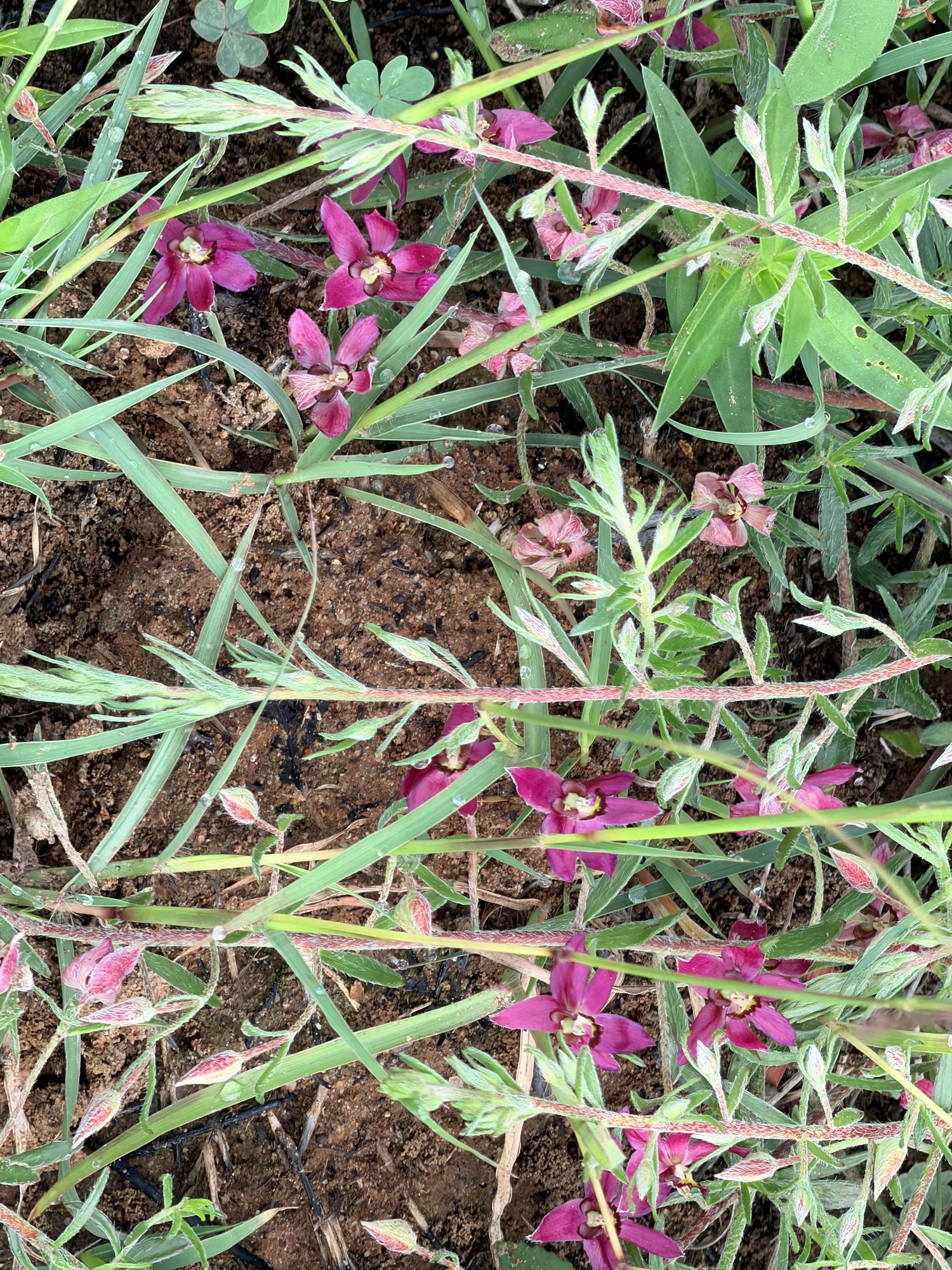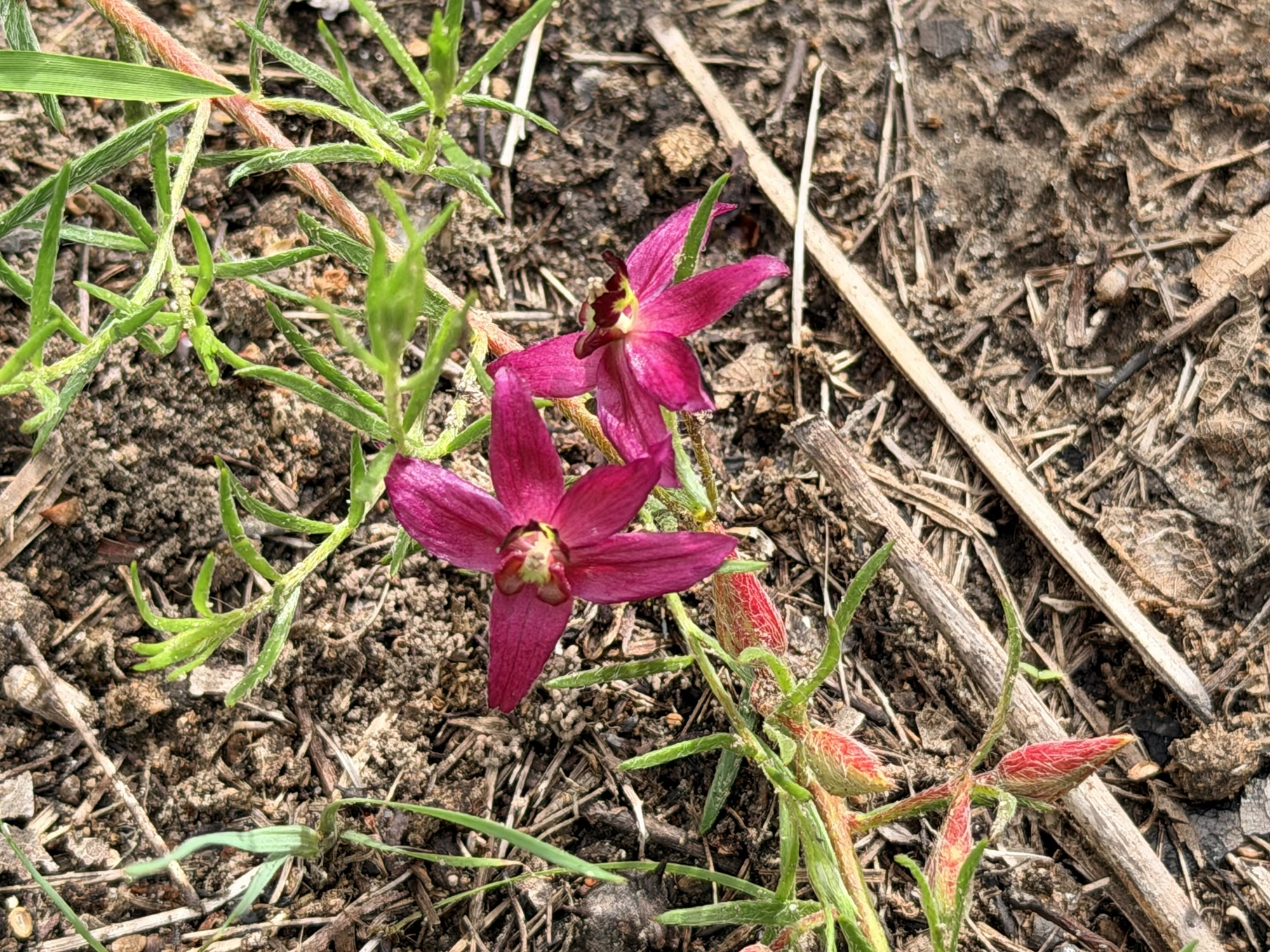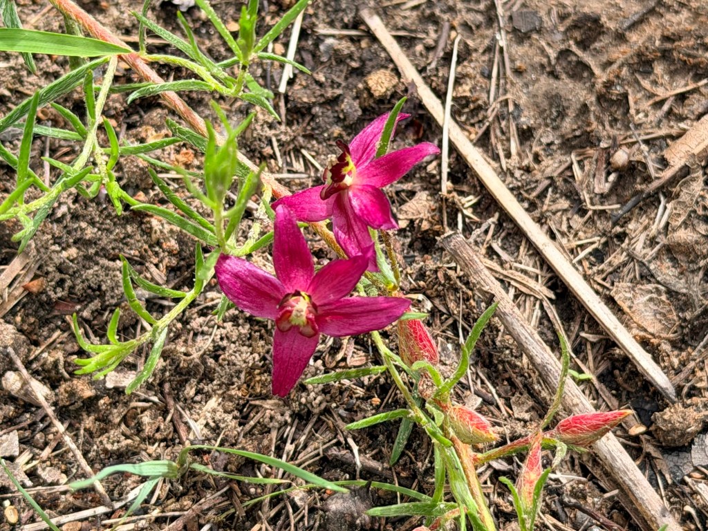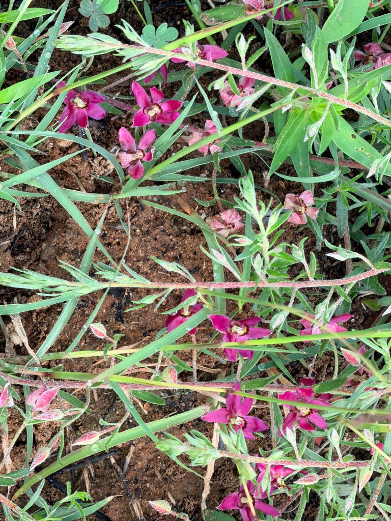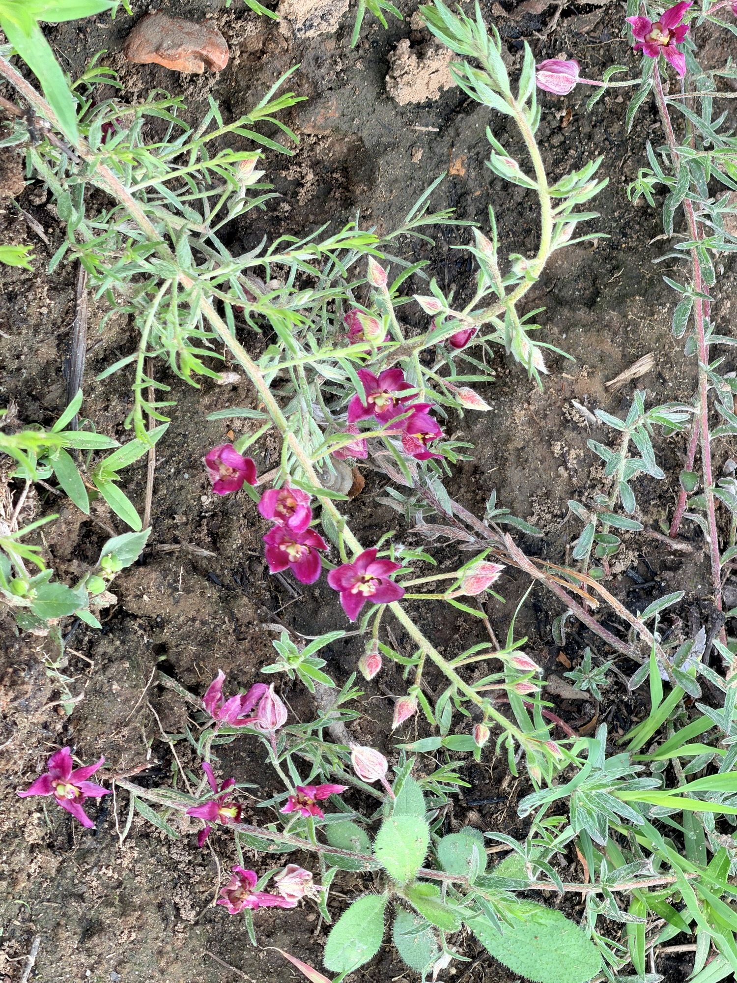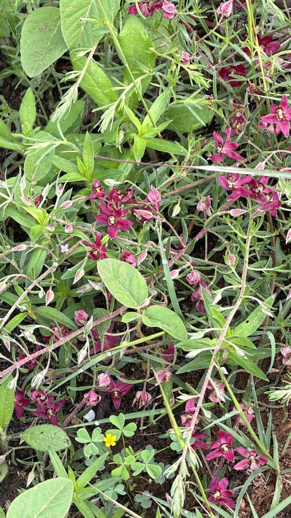 Anyway, the point is that the number and variety of wildflowers I encountered on the burned grassland astonished me. I found myself muttering and exclaiming to myself as I encountered one beautiful plant after another. For example, there was a carpet of trailing Rhatany (Krameria lanceolata) in many places. This is a deep red blossom that’s unforgettable.