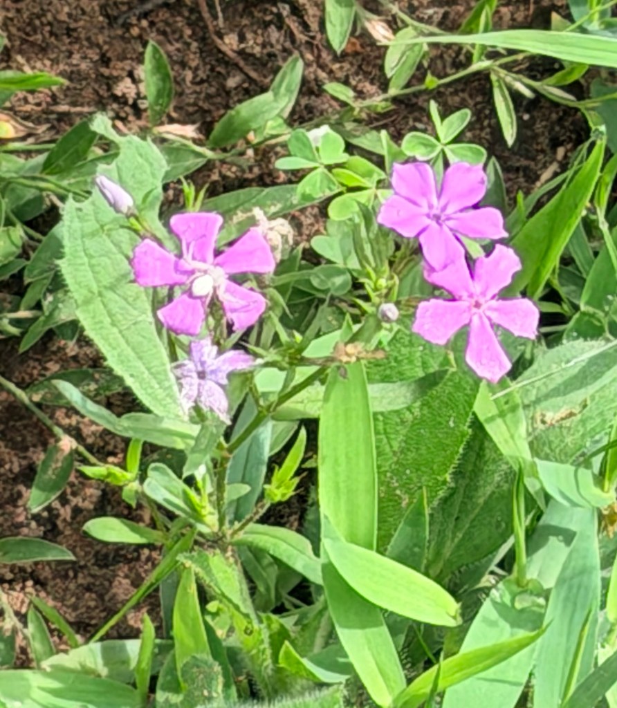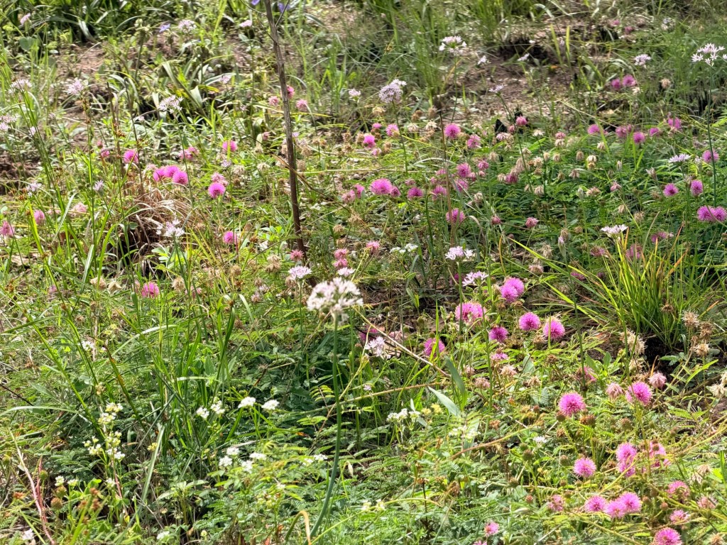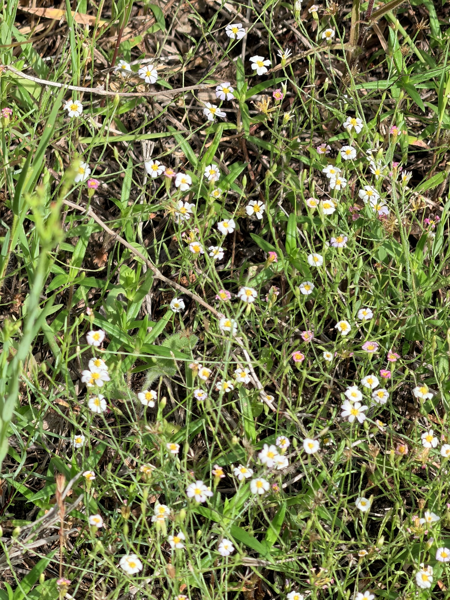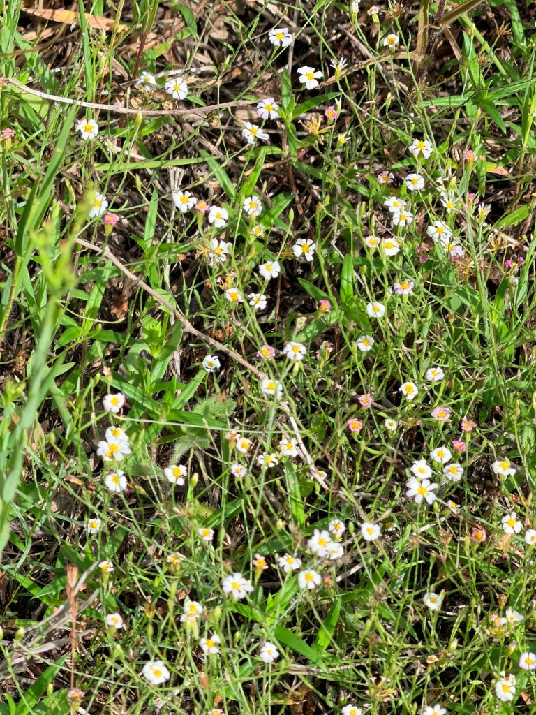 In addition to those, there were hundreds of wild garlic plants blooming, phlox, colorful spider worts, and tiny flowers called Arkansas Leastdaisy or (duh) tiny daisy (Chaetopappa asteroides). There were winecups in large numbers, too. It was not apparent that there were so many flowers unless you looked carefully, but by stopping to look, you’d be greatly rewarded. I was in heaven.