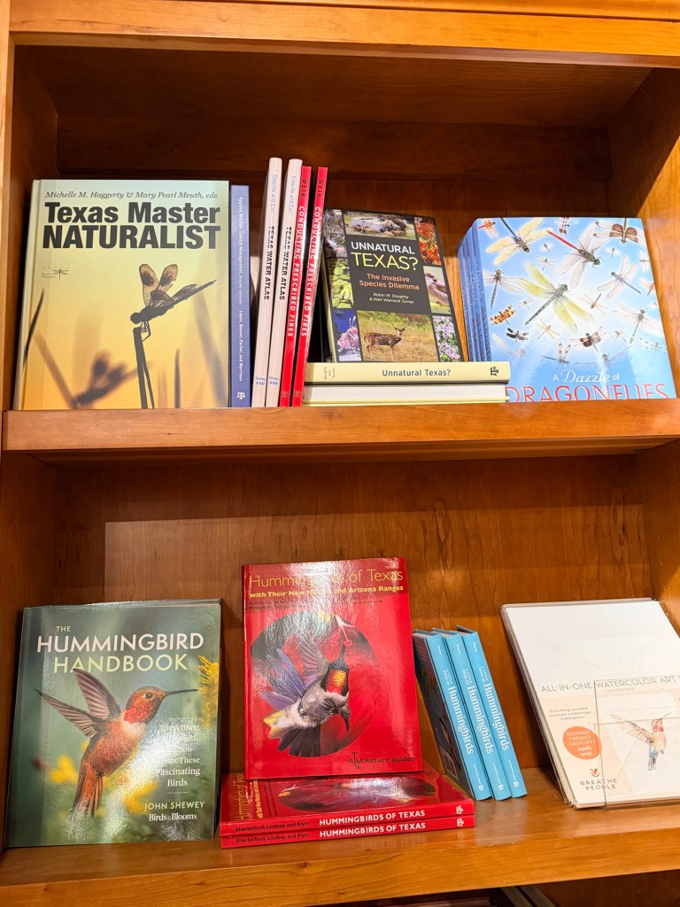 We rewarded ourselves with a visit to the gift shop, where we found the Texas Master Naturalist textbook among the offerings. I got a book I can’t wait to read, with plant and insect mandalas.