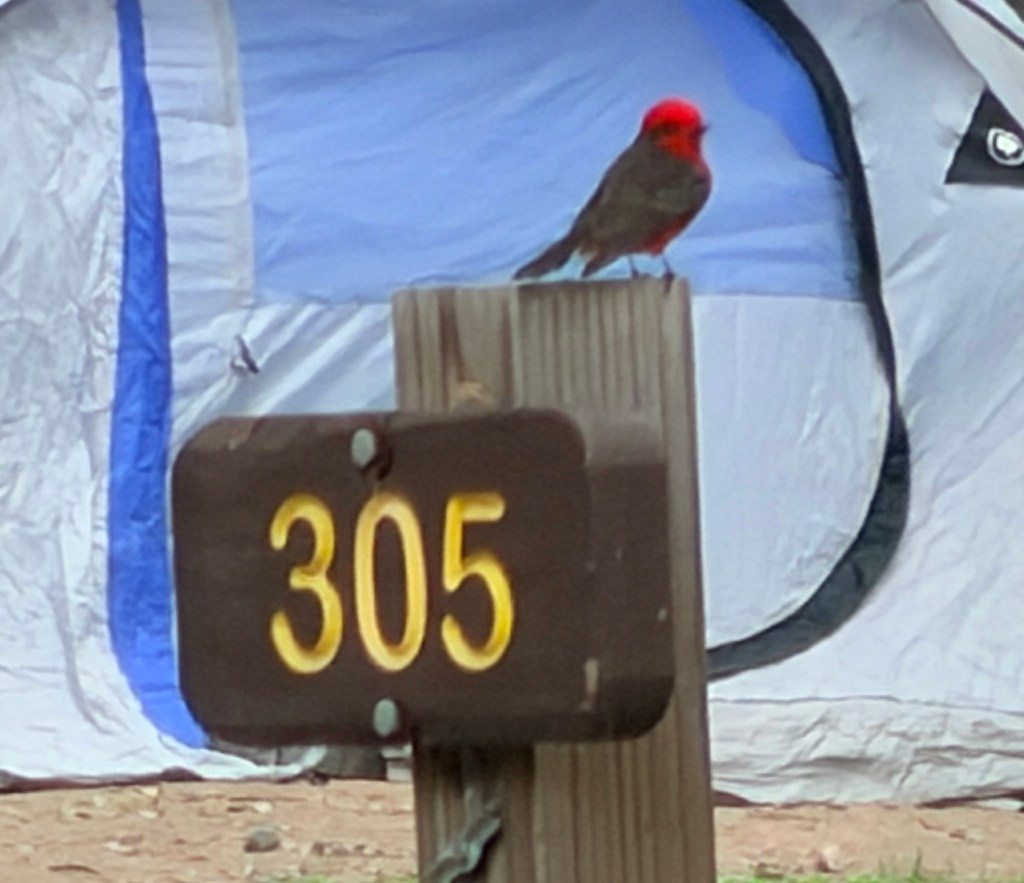 The only demographic left out were us birders. Lucky for me, there were some pretty darned loud birds, like Ash-throated and Brown-crested Flycatchers, Yellowthroats, Black-crested Titmice, and endless White-winged Doves. Plus I saw many fun birds, like a Lark Sparrow that repeatedly came over next to our outside chairs to eat seeds and ants. A huge Raven sat in one of our trees, and I even saw a Vermilion Flycatcher and an Orchard Oriole. Here are my phone photos.