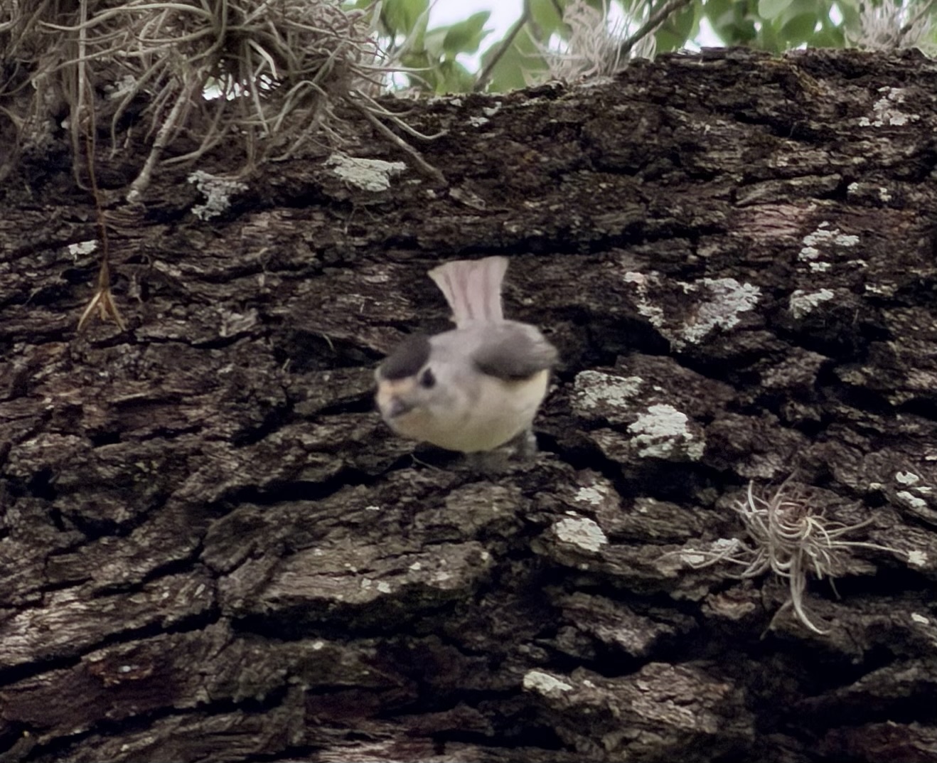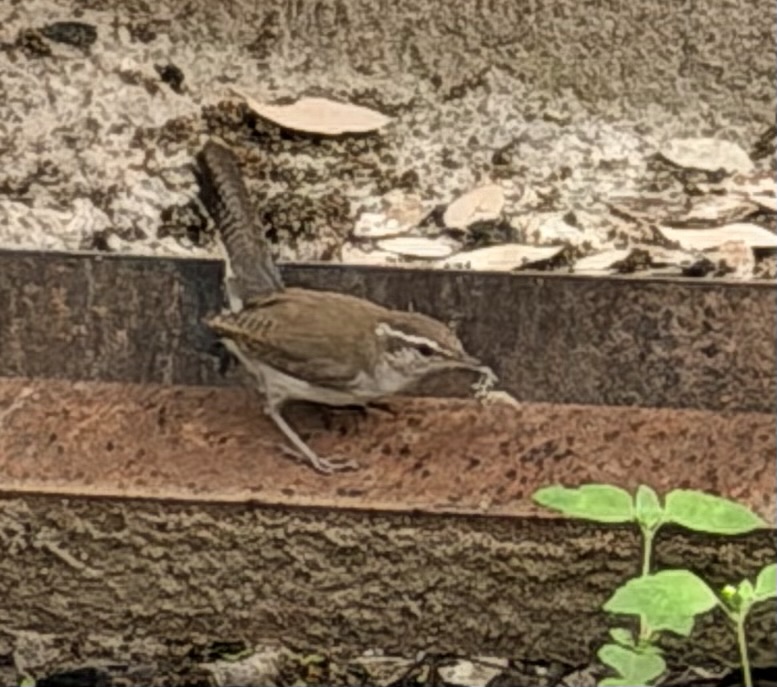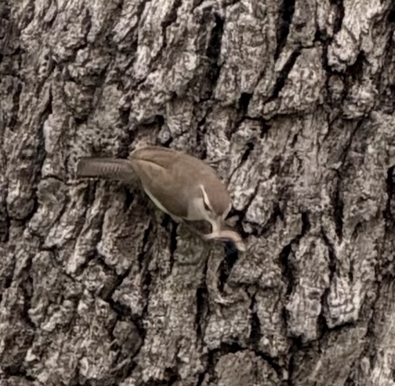 A pair of Bewick’s Wrens were busy all afternoon working on their project. They mostly chose the flower stalks off ball moss to take up to the Jeep.