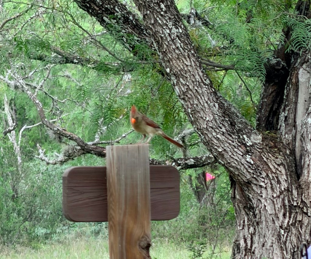 Another quick bird story. I saw the Park Host taking a rag out from under his car. I asked him why he stored rags there, and he laughingly told me it was to keep wrens from nesting in there. He can’t get them to stop trying (thankfully, he’s heading to another park tomorrow.) Wrens are quite persistent. I thought it was a fun story to share with Lee.