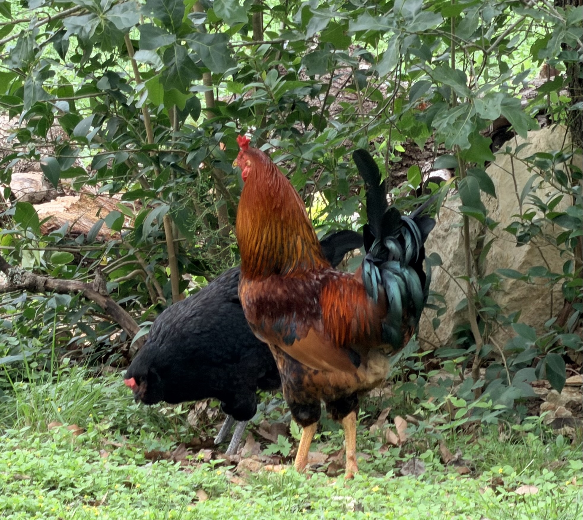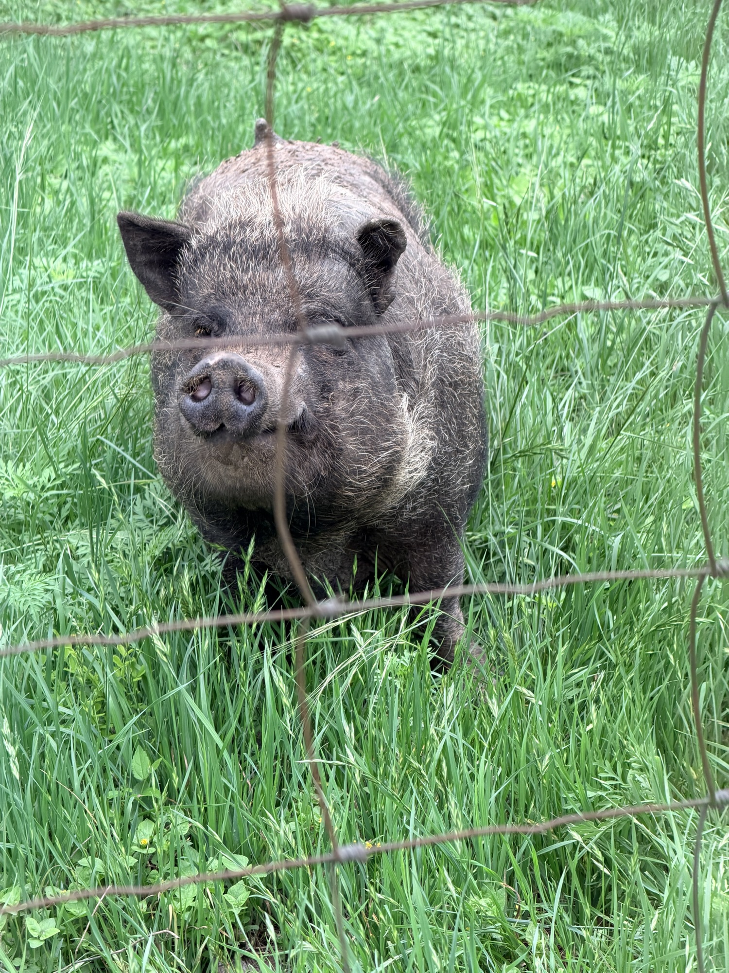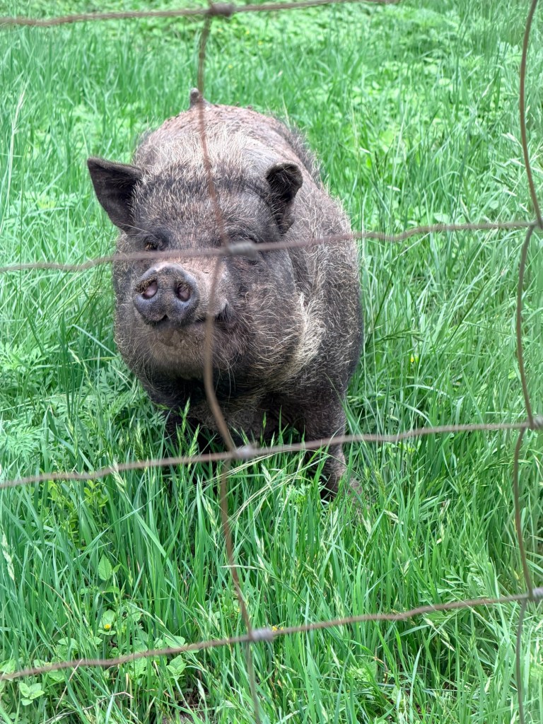 It was an adventure getting the RV and Jeep to the repair place, which is well off the main road. But Lee did it masterfully! While he talked to the repair folks, I met the neighbors.