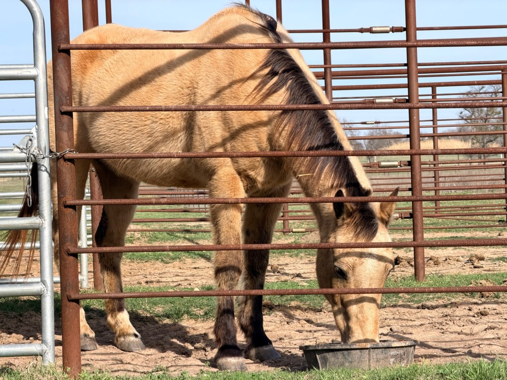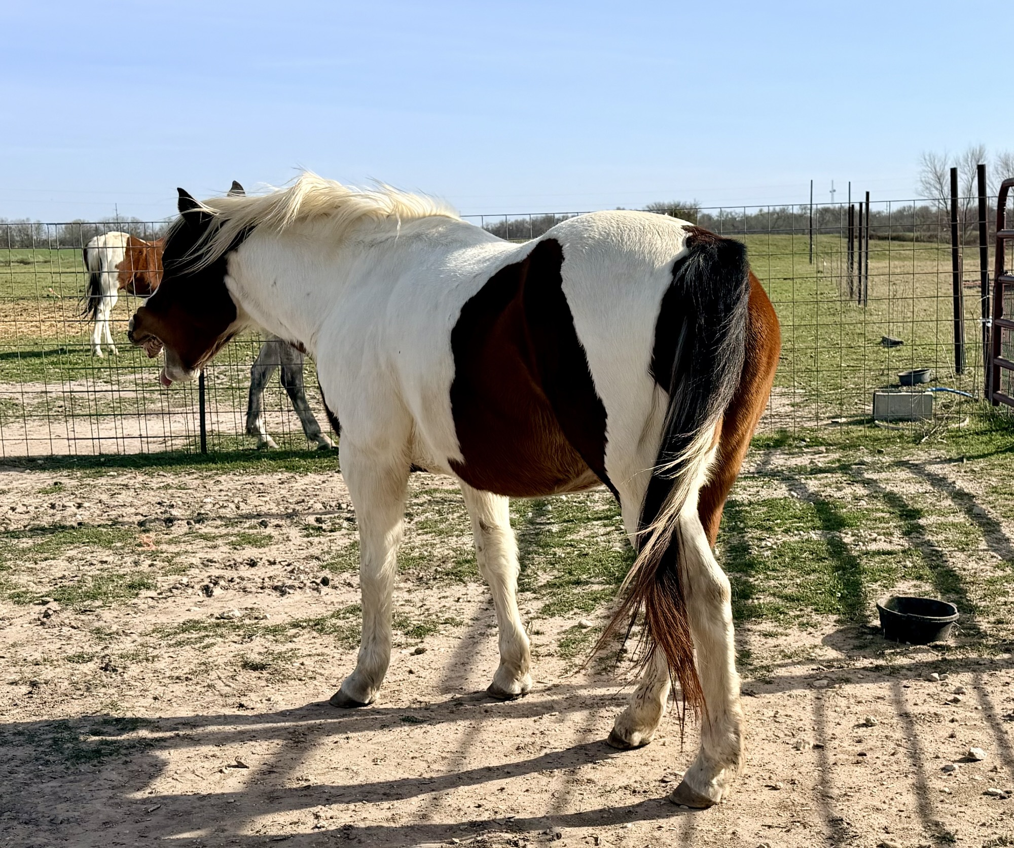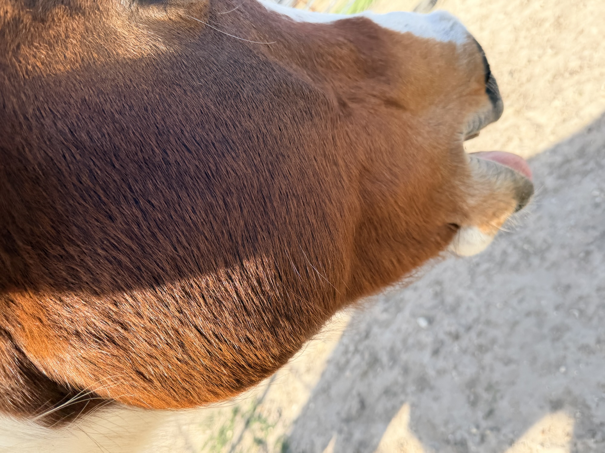 When we moved on to work on Apache, I went in the pen to hold his lead and pet him more (I’d already groomed and hugged on him). Sure enough, I heard rhythmic breathing, then there was a tug on the rope. Fiona had found her way into the next pen for more affection. I indulged.