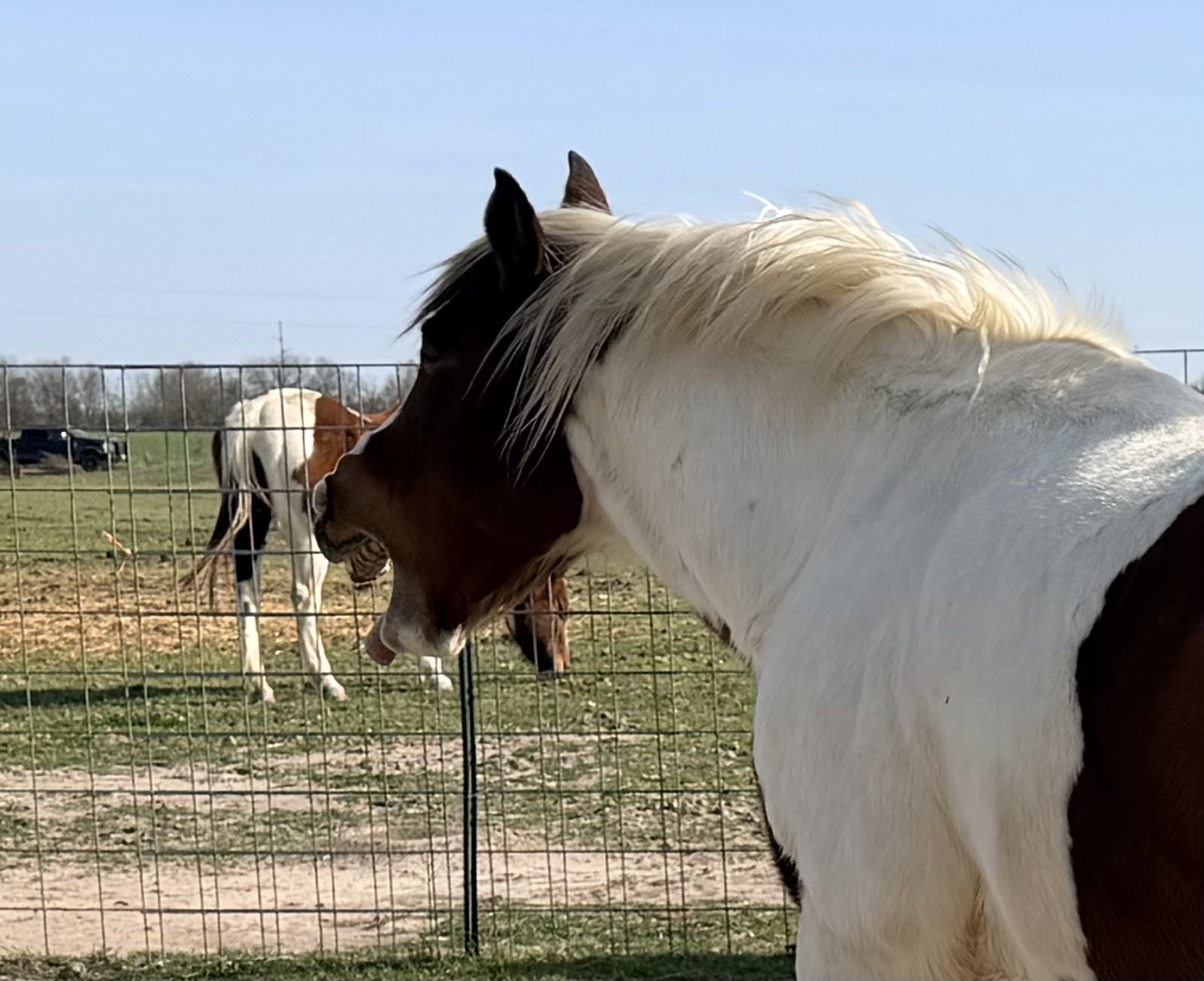 Then I looked over where Drew and Spice were hanging out and realized Spice was yawning, too. I guess it’s contagious in horses as well as humans!