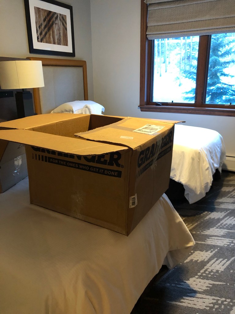 Over here in Colorado, a nice guy at the condo place found me a good box to mail things home in. That makes up for the unfortunate fact that they installed a family with children who never stop moving the entire time they’re awake upstairs from me. The parents are also stompers, thumpers, and droppers of heavy objects. That’s good, I think, because it makes me want to go home.