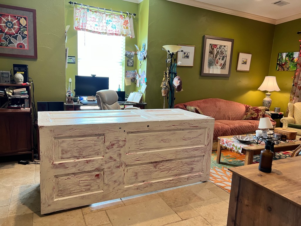I used to have an amazing office in a cool old house in Cameron, which I’d invested my heart and soul into decorating to my own quirky tastes. We had just gotten my window of glass objects up when we had to leave for COVID reasons. Then last year’s cold front killed my plants.