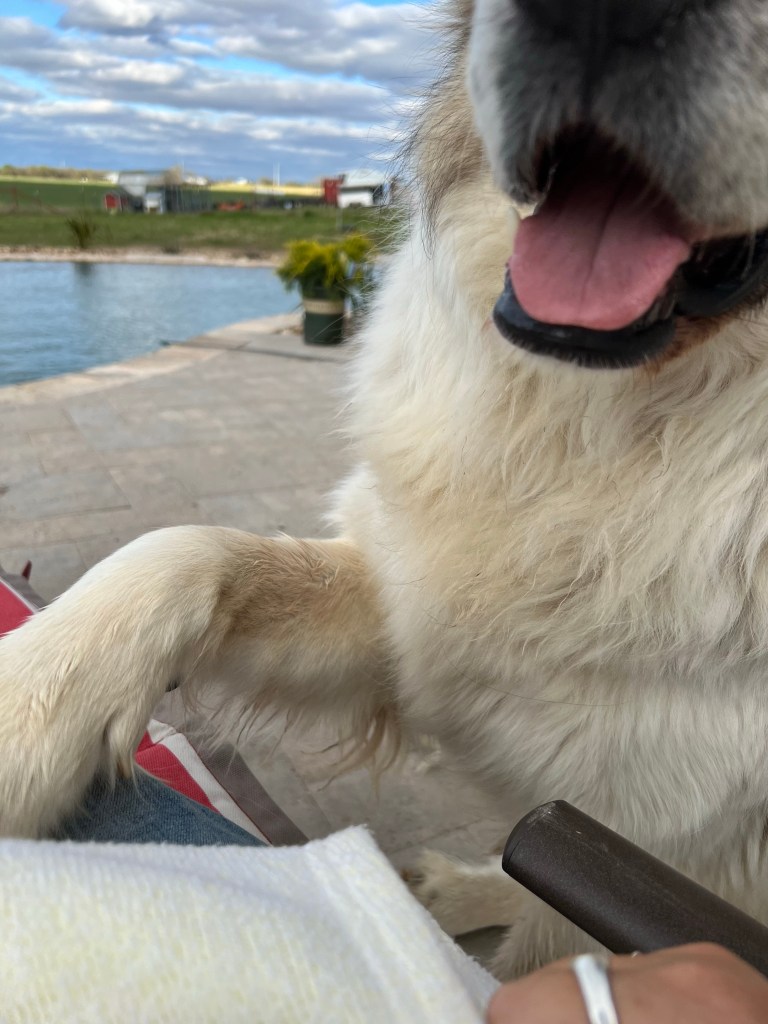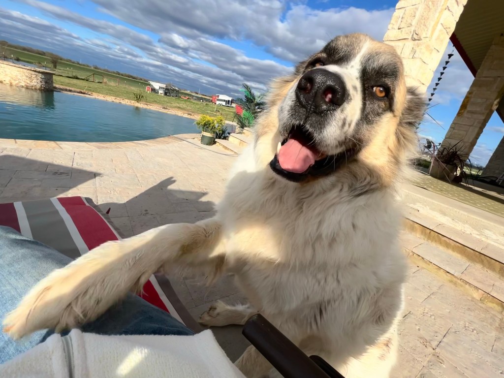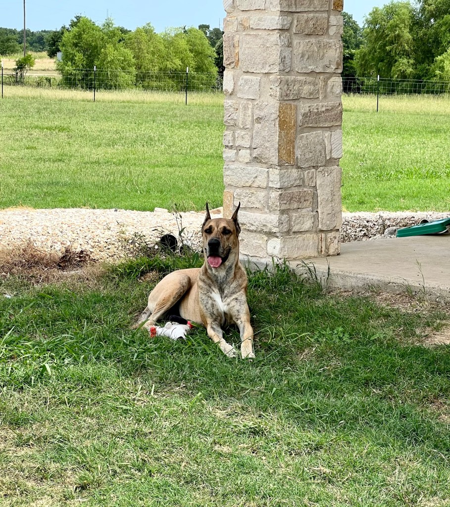We still don’t know what happened. We looked everywhere but found nothing suspicious. No one shot him, either. He’s been safely in our dog area. So, Lee gave him antibiotics and pain killers. He was sad for one day, but has perked up. Naturally, he rolled in dirt, which caked in the ointment. But hey, no blood.