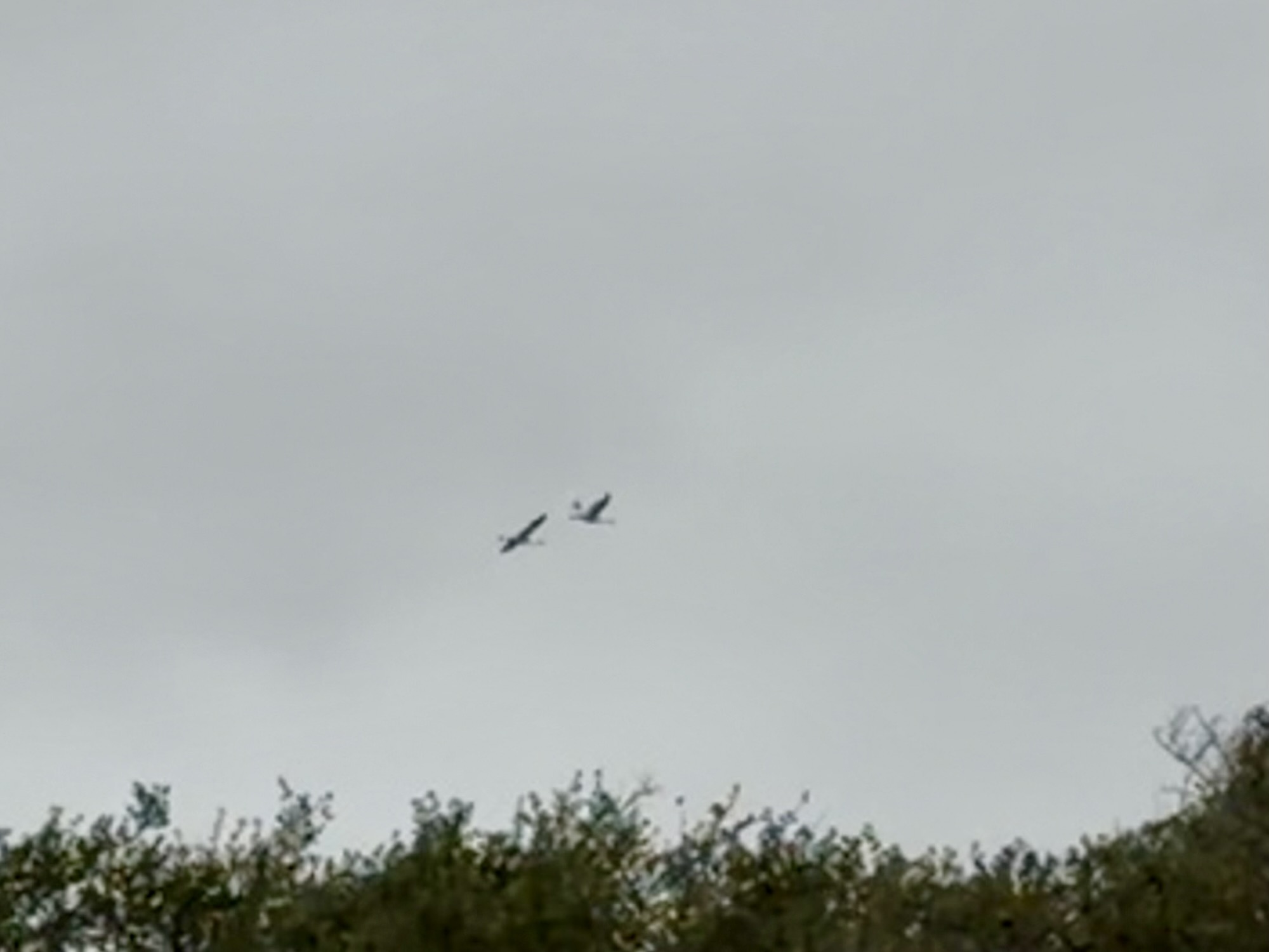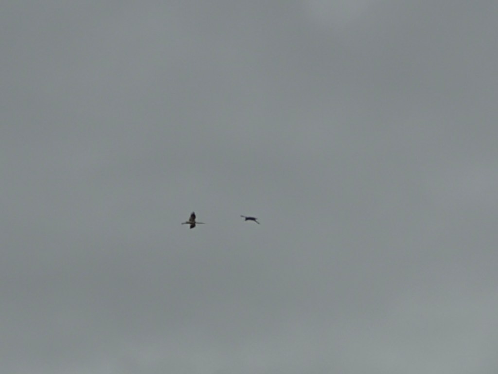 We then caravanned back over to the Whooping Cranes, where Bernice and I got to see some flying overhead and whooping! We were like two little kids in our excitement! We no longer cared about the cold and were very happy to share our joy with others who were there. The birders here are very collegial.
