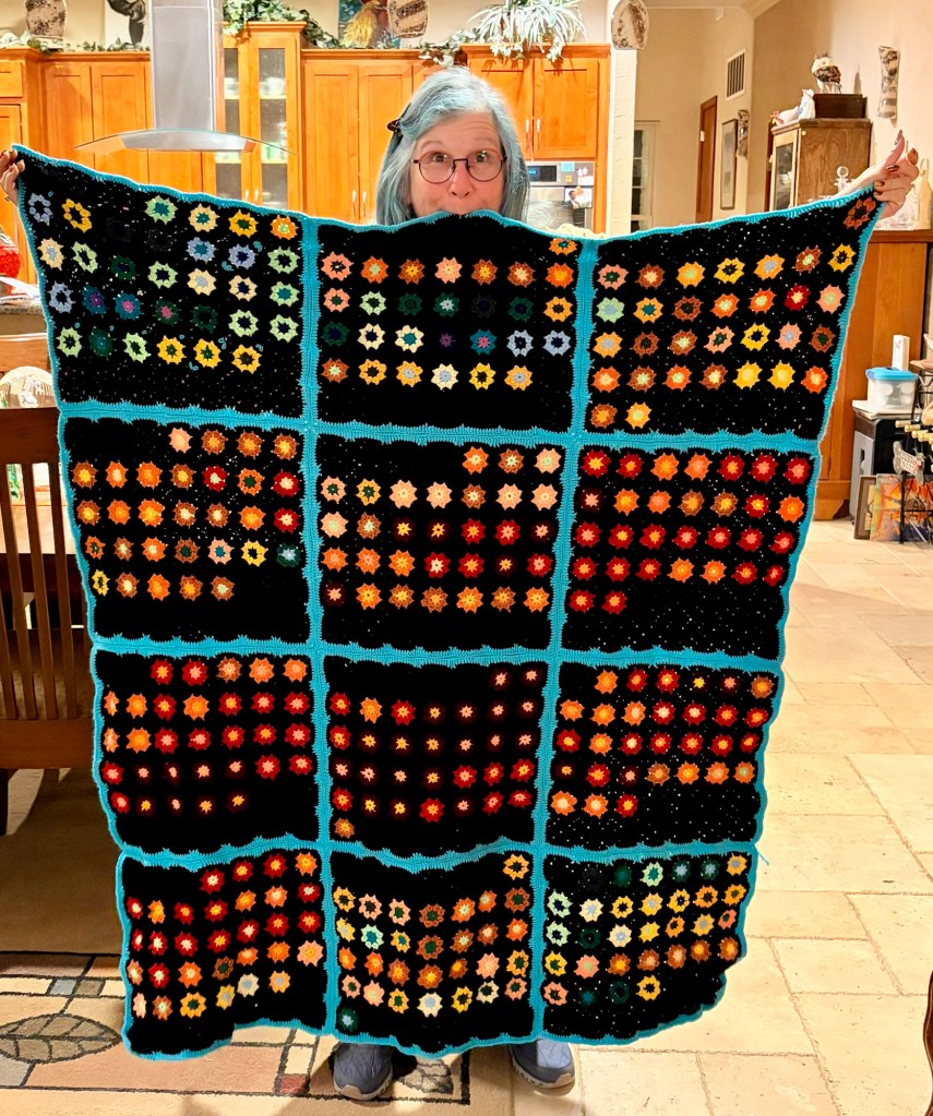 My accomplishment I wanted to mention is that I got the 2025 temperature blanket assembled into one piece on New Year’s Day, 2026. I’m so proud of myself. And it even looks good! Best of all, it’s functional. I can use it as a lap blanket.