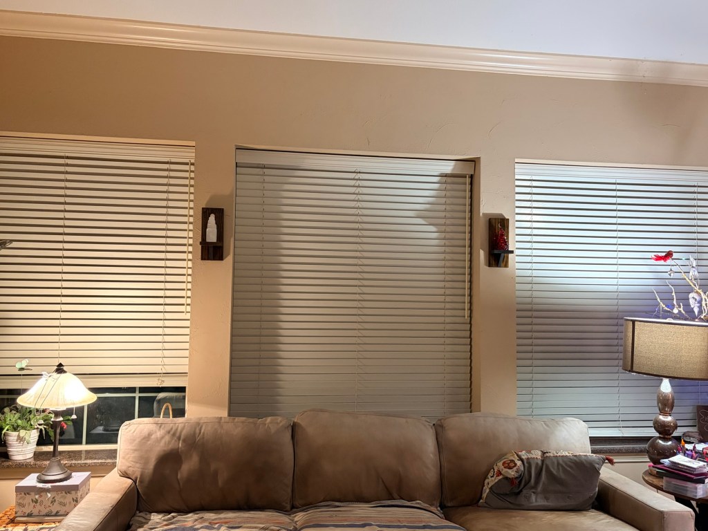 I also appreciate that my son made these sconces for me and hung them up. I’ll get a closer photo.