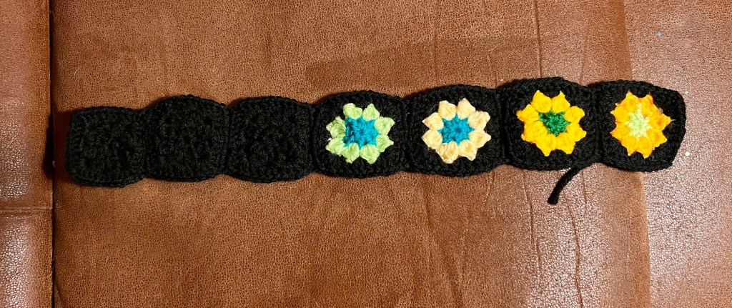 I’m sort of glad a huge cold front is here, because I ran out of Caution, the bright yellow that’s 70-75°. I’ve ordered more, and I’m pretty sure the replacements, and a lot more black, will get here before it warms up again. I get a bit over-excited when I get to use green, blue, and maybe purple in my blankets, because it sure hasn’t been cold this year.