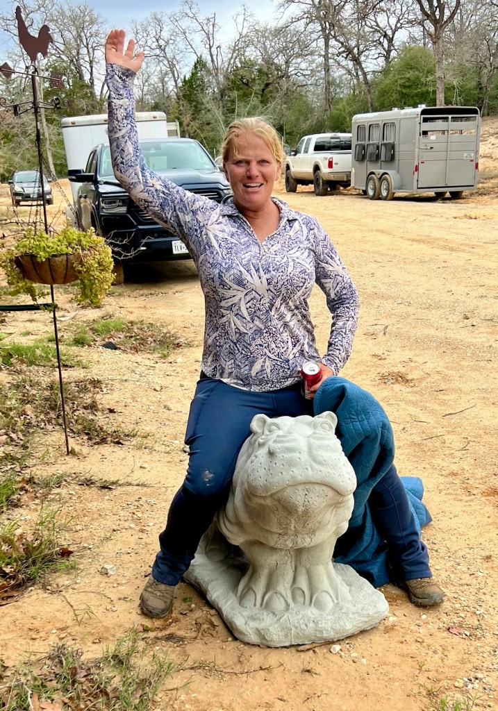 She really did want a hippo and one of our horse show group knew where to get this cute and very heavy statue. It weighs over 500 pounds. One help in finding a hippopotamus in central Texas is to know that the mascot of the town of Hutto is the Hippo, so businesses all over there have statues in front of them.