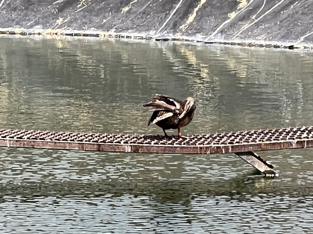 Yellow bee plant Wild licorice!Hungry Great Blue HeronWetland at fishery Fluffy duckRobin enjoying a berry