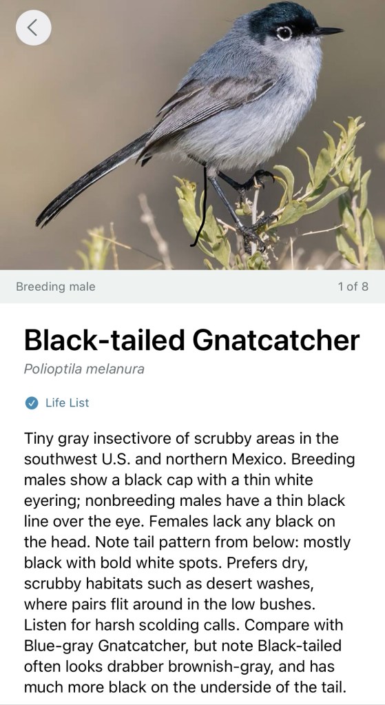 I did hear a new bird, and even better, I later saw it. The Abert’s Towhee is all brown but has a cute black eye mask. I would have a photo but when I saw it my phone had overheated.