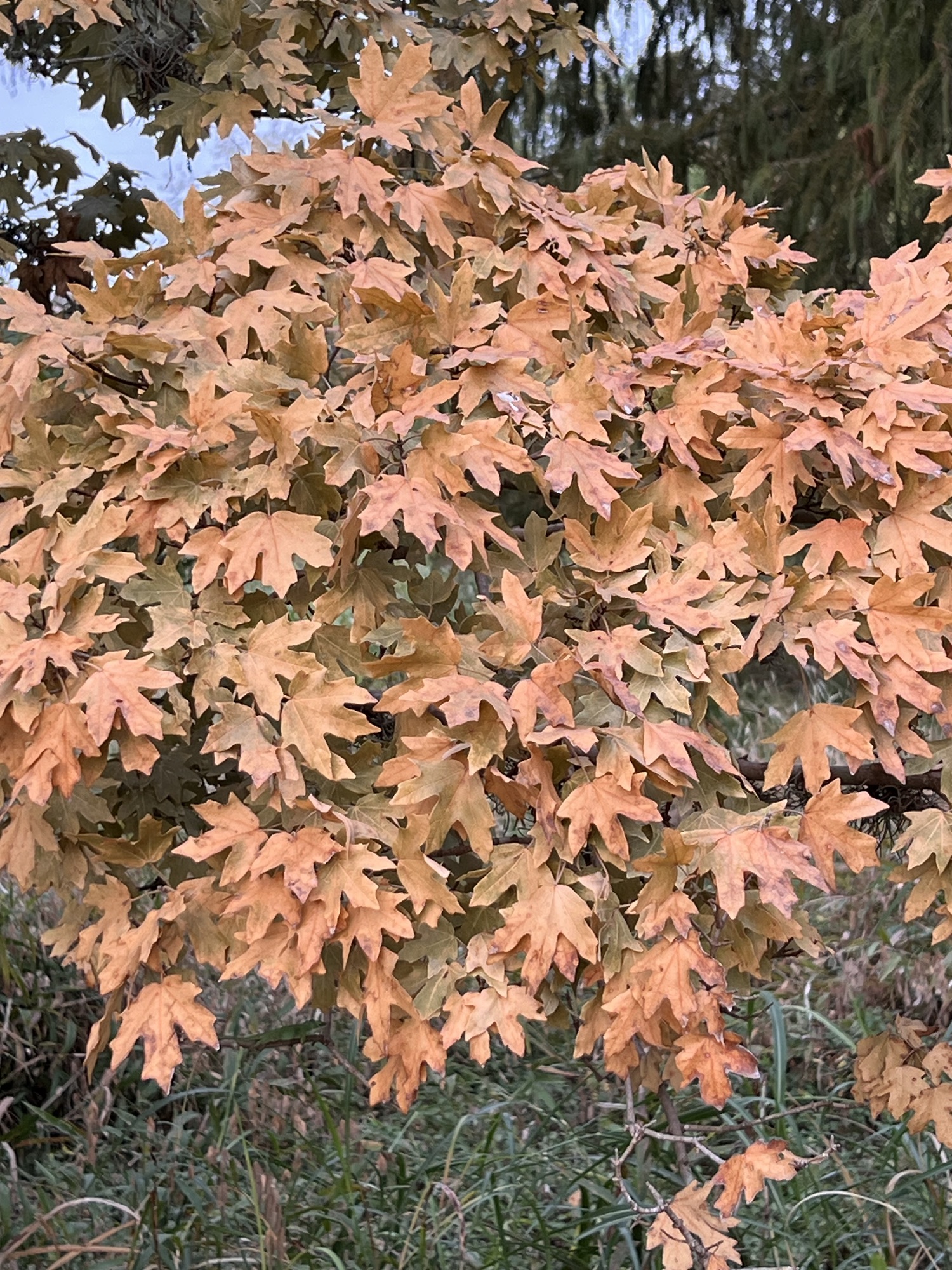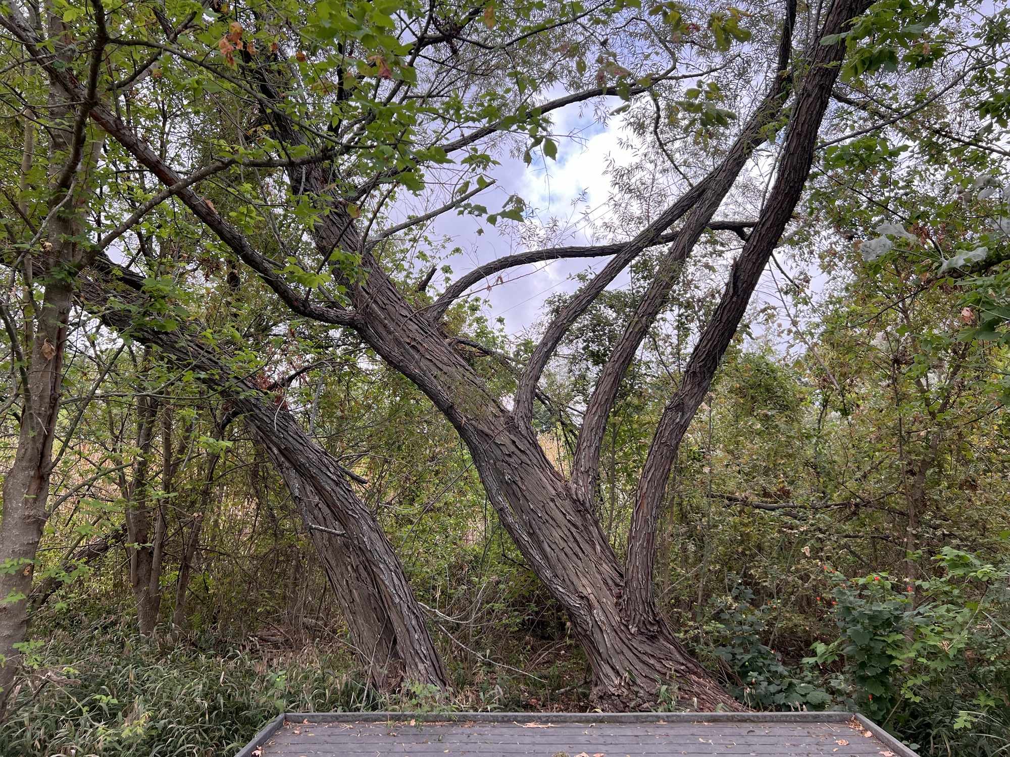 I got past where I’d been earlier and saw that the trail was turning back. I thought how nice it would be to circle back. It was indeed a beautiful walk past an interesting wetland area with cattails and such.
