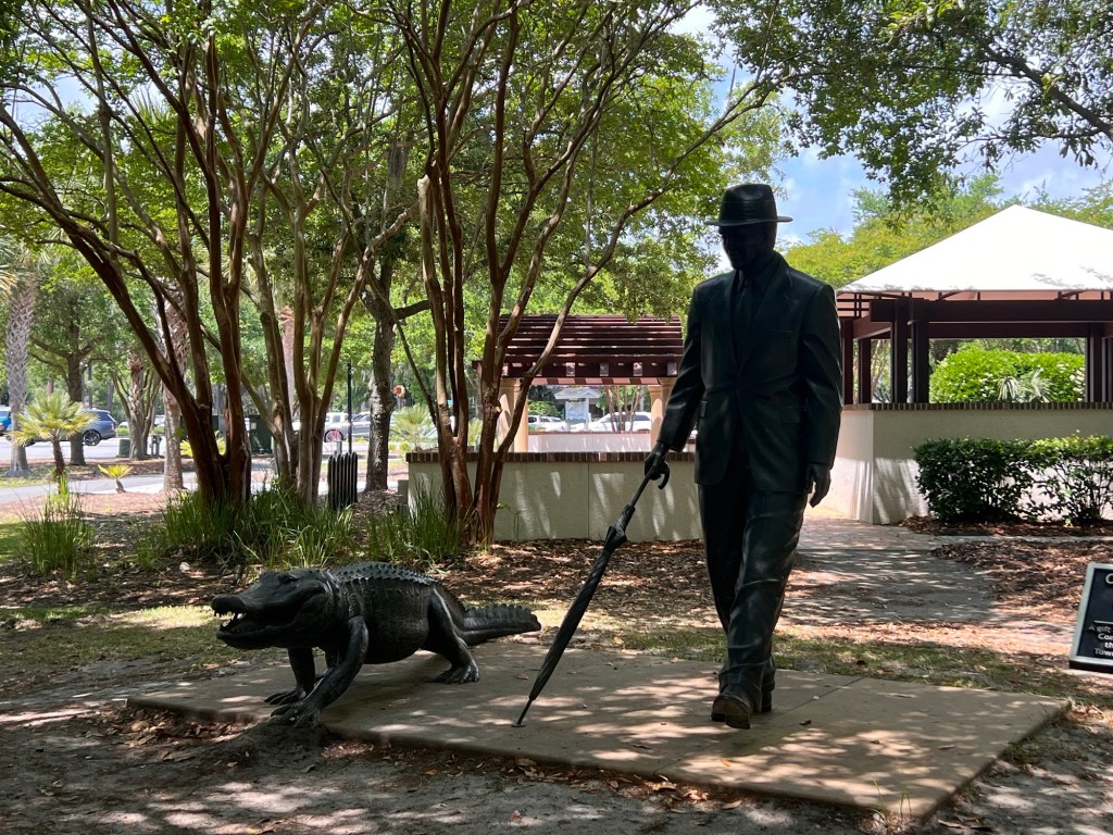 I also enjoyed the nearby park, Compass Rose Park, which I’d driven by many tims, but not visited. It has a cool statue of a man walking an alligator, and a large kinetic sculpture of a compass rose, along with some interesting water features. I’m glad I visited.