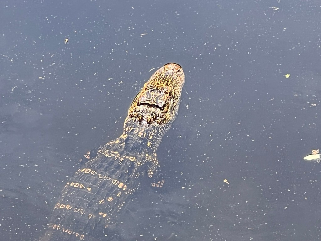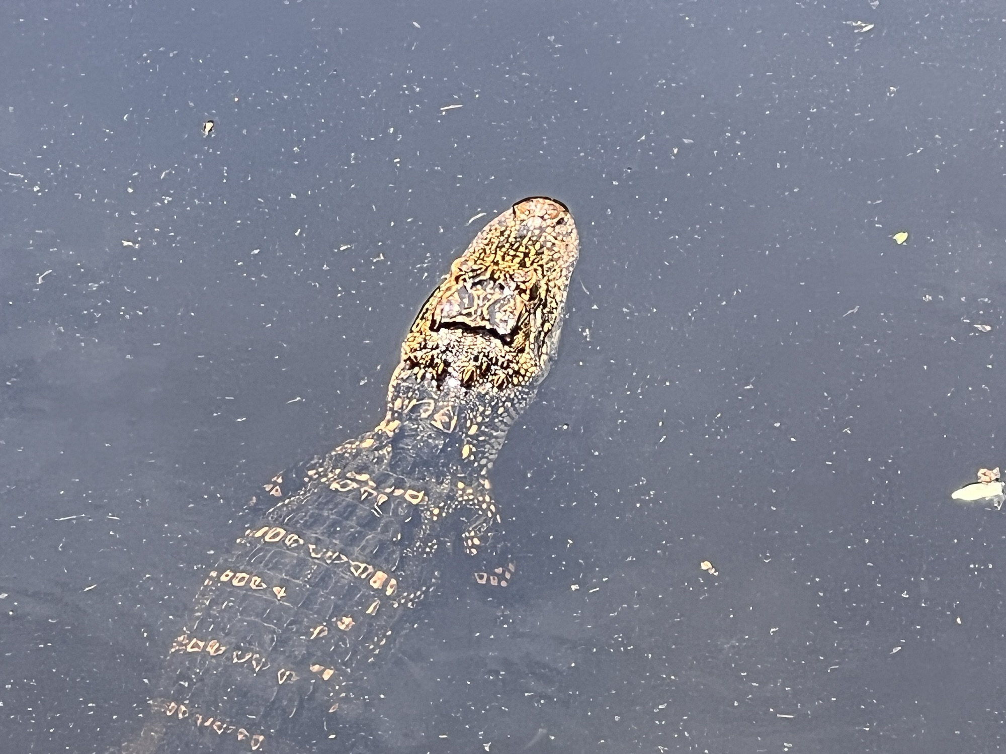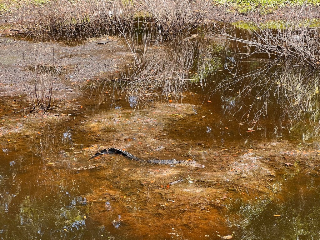 And speaking of alligators, I found plenty of them on my walk. All were fairly young. The first one I found when I was taking a picture of a turtle to upload to iNaturalist. I looked at the image and realized the turtle was not alone.