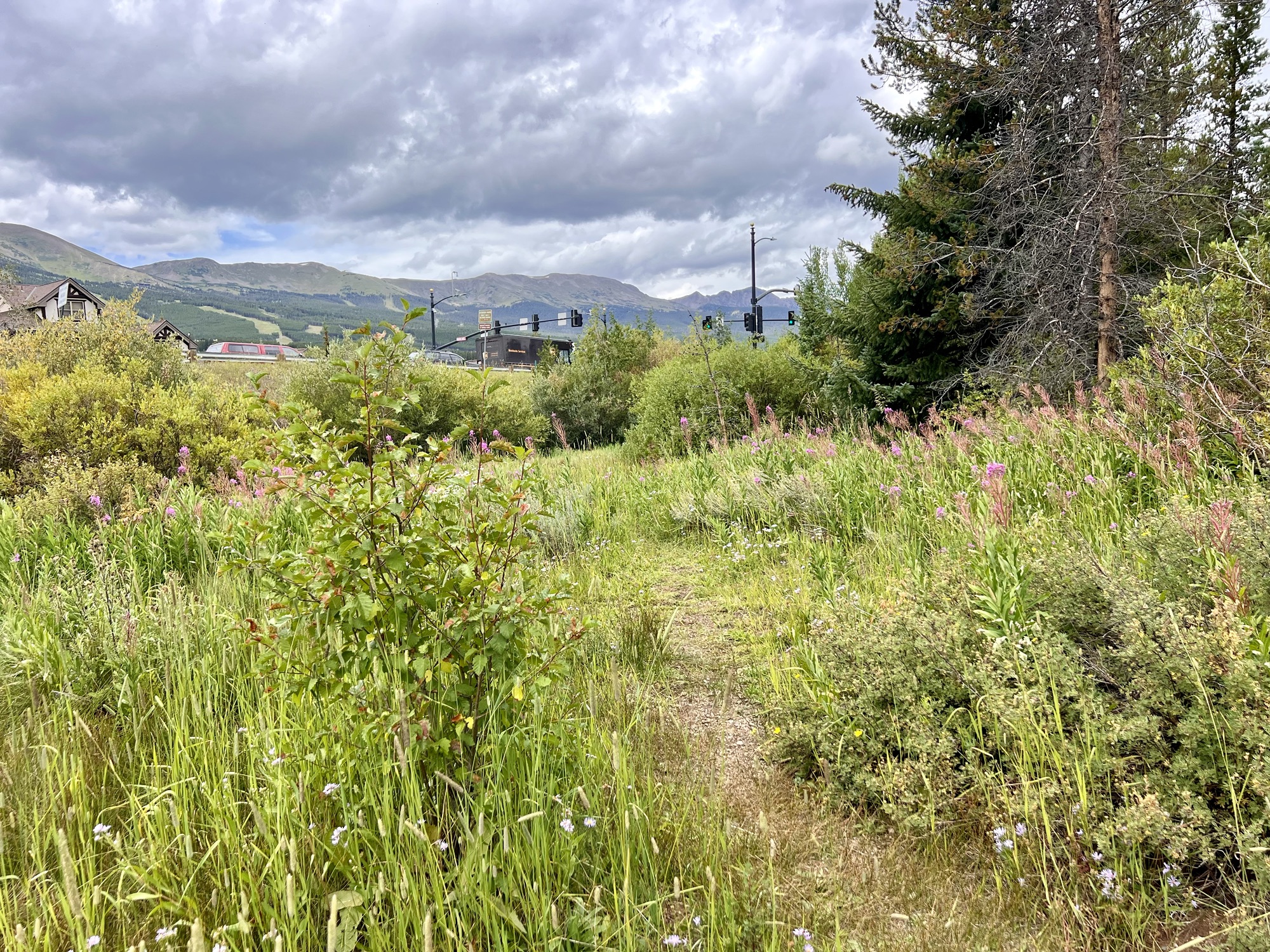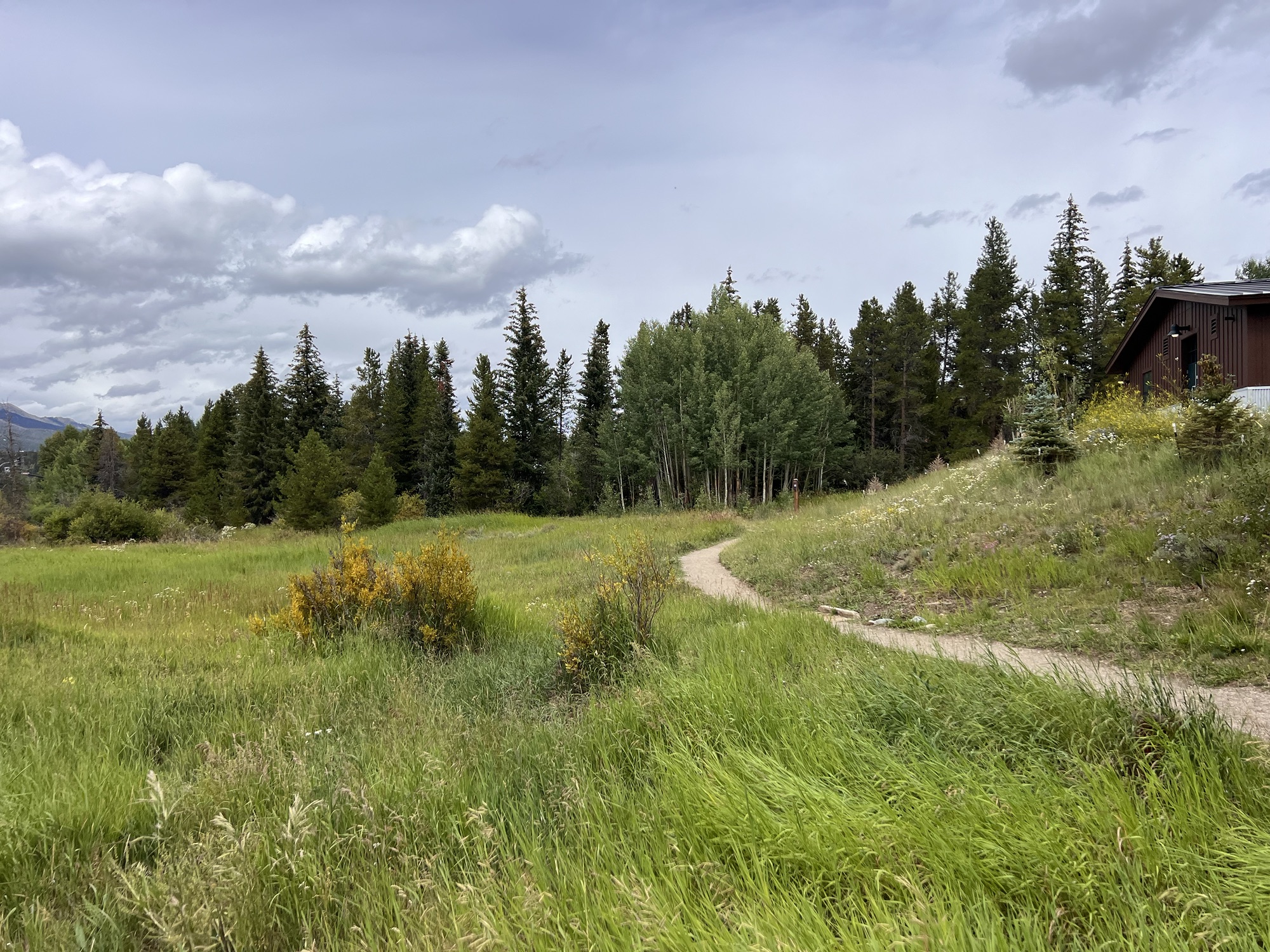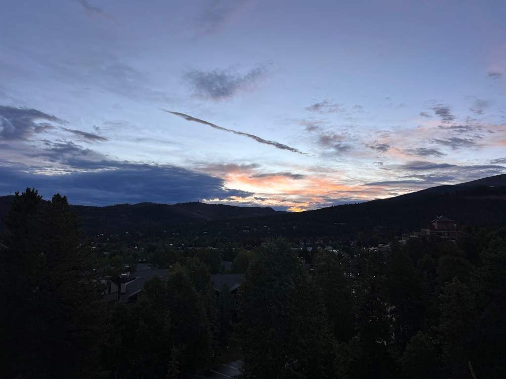 I had a bit o’ trouble sleeping due to altitude headache, but it ended up fine. After coffee on the balcony I intended to just walk down the road here in Breckenridge, but ended up finding a beautiful trail along a creek. I went down it and listened for birds, until I had to get back to meet up with my local friend.