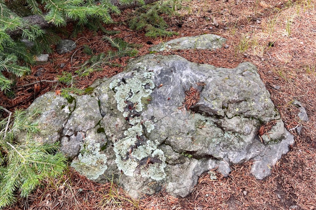 I got this dog posing in front of the troll His name is IsaakYet another squirrel Part of my walk was through this meadowIt’s so prettyBut trucks were behind the plantsMushrooms Big shroom – shaggy maneNot sure what this isToadflax is beautiful Beautiful lichenThe train museum!