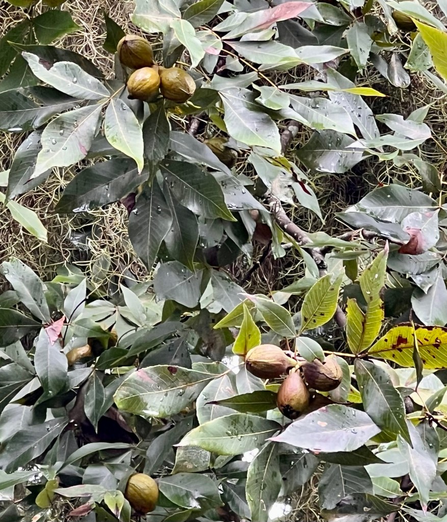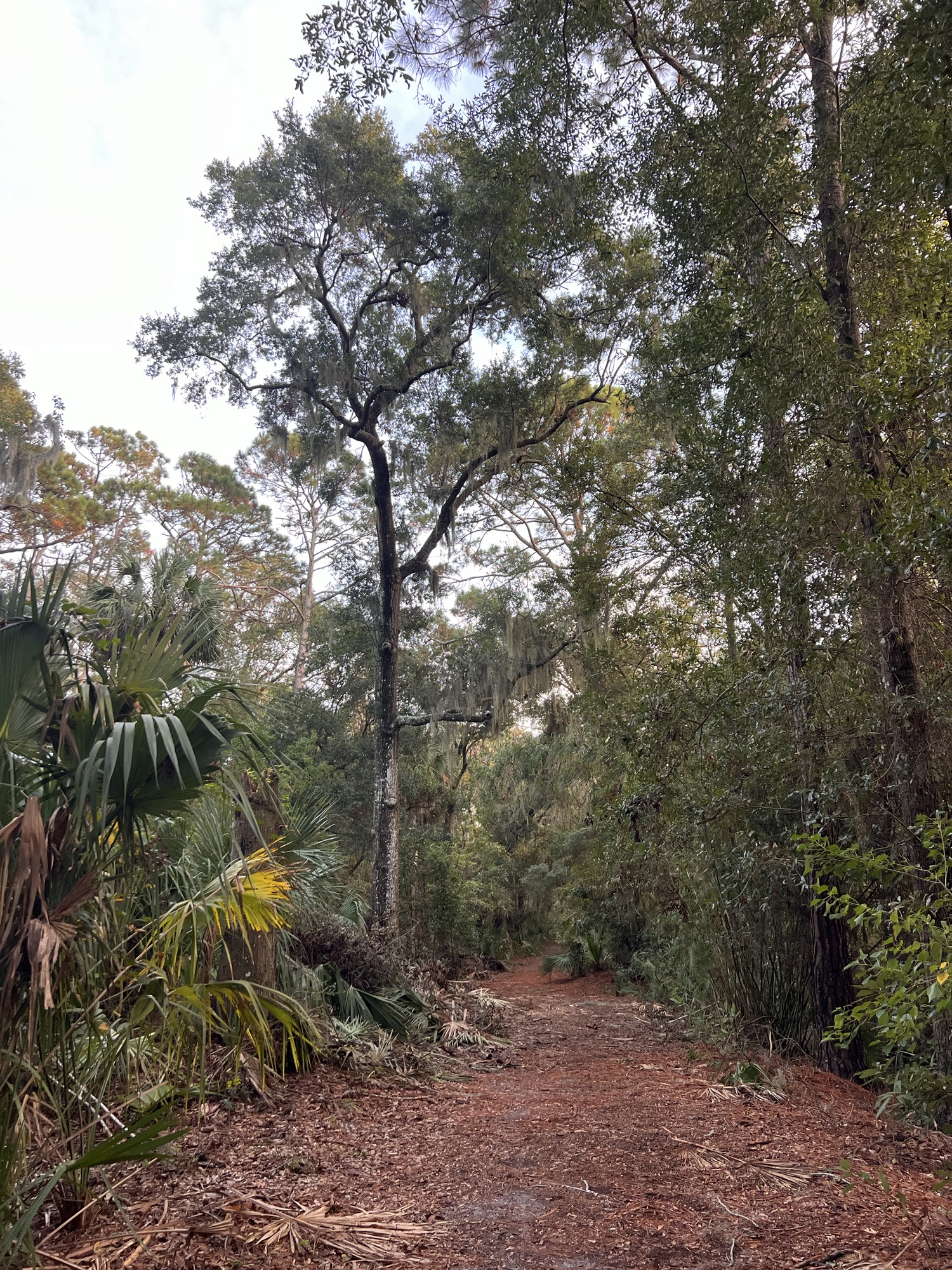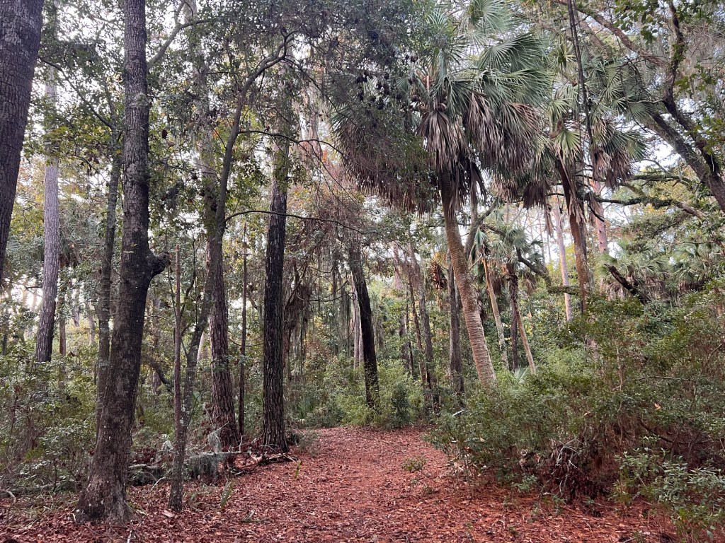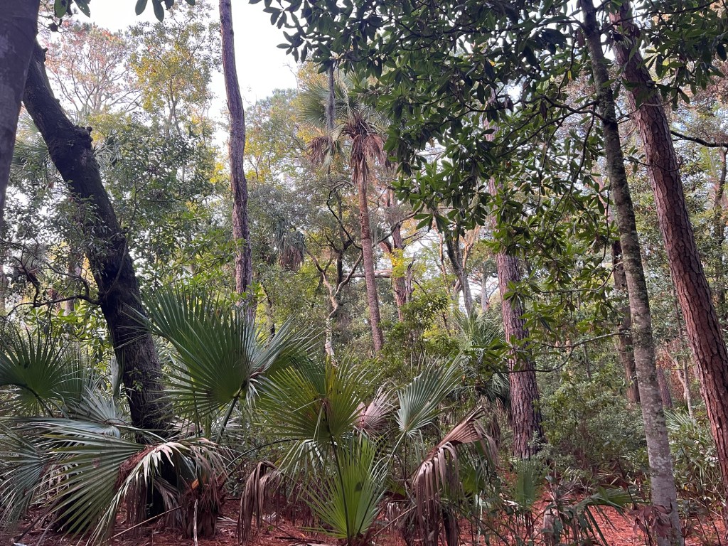 This is a magical couple of acres that is chock-full of native trees and shrubs that have been allowed to live out their lives, like Wohlleben recommends. It’s because Hilton Head Island was isolated for most of the time intense logging was done, and occupied just by the Gullah folks who mostly did small farming plots and a lot of fishing. There are still old-growth forests here.