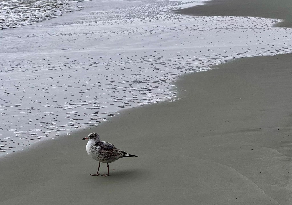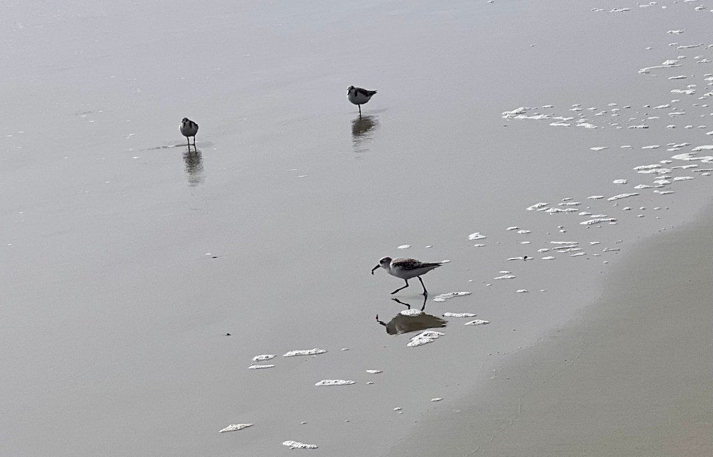 FogReflectionsI sat on this log to watch birdsRing-billed GullSanderlings, one with foodFishing cormorantBeach time!i