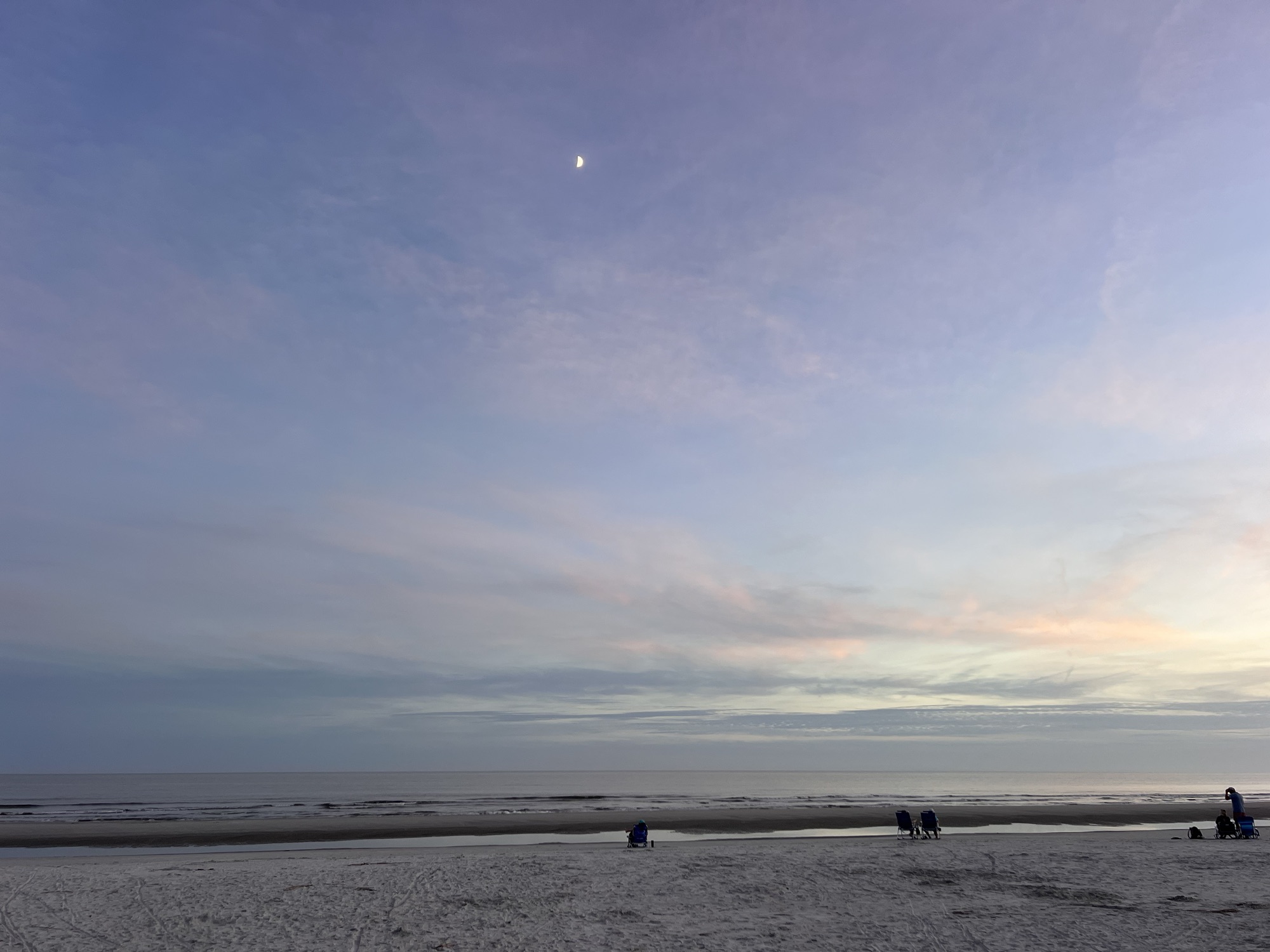 The beach didn’t disappoint me this time, as I got to see the beautiful reflections of the clouds in the tidal pools. I have such fond memories of coming here with Anita and enjoying these views together. The moon was out and reflected in the water, which was magical. What felt like a miracle occurred. I got that feeling of deep contentment that I get when Nature surprises me. I was happy for the first time in quite some time, probably since the last horse show.