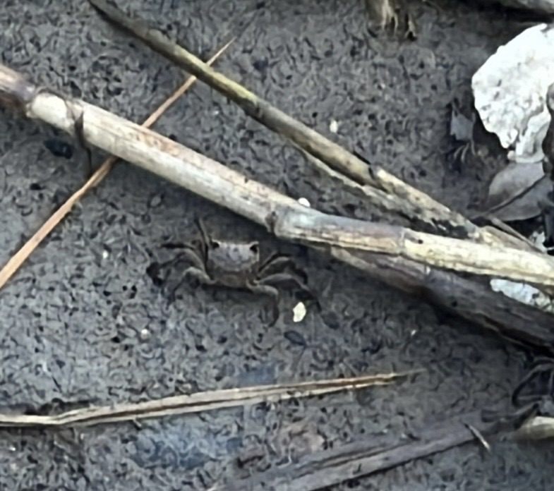 Just look at this tiny crabby cuteness. It’s a squareback marsh crab – Amases cinereum.