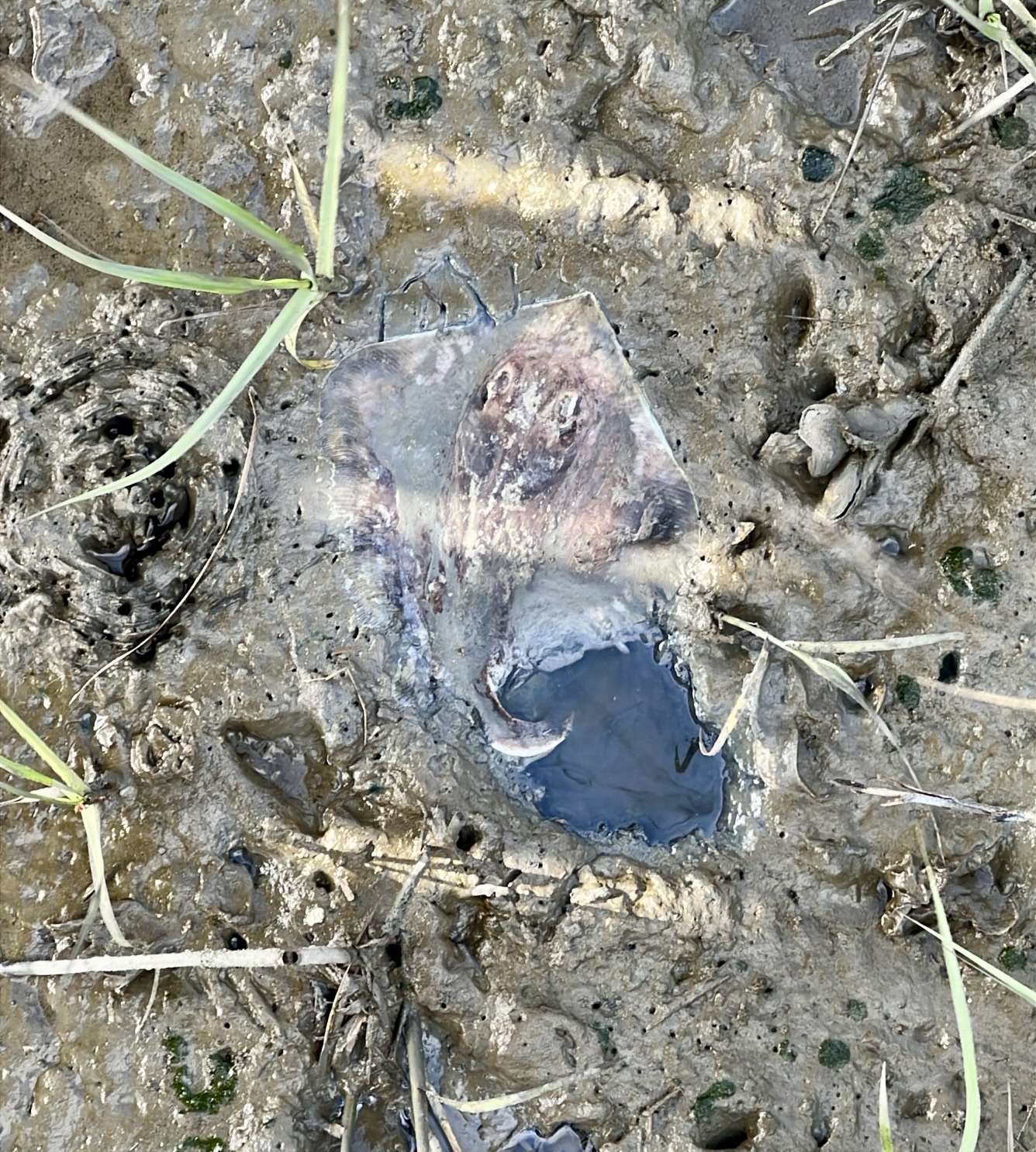 I love the views of the marshes and river.This makes me happy.The smell identified it before I saw it.Another unfortunate stingray.