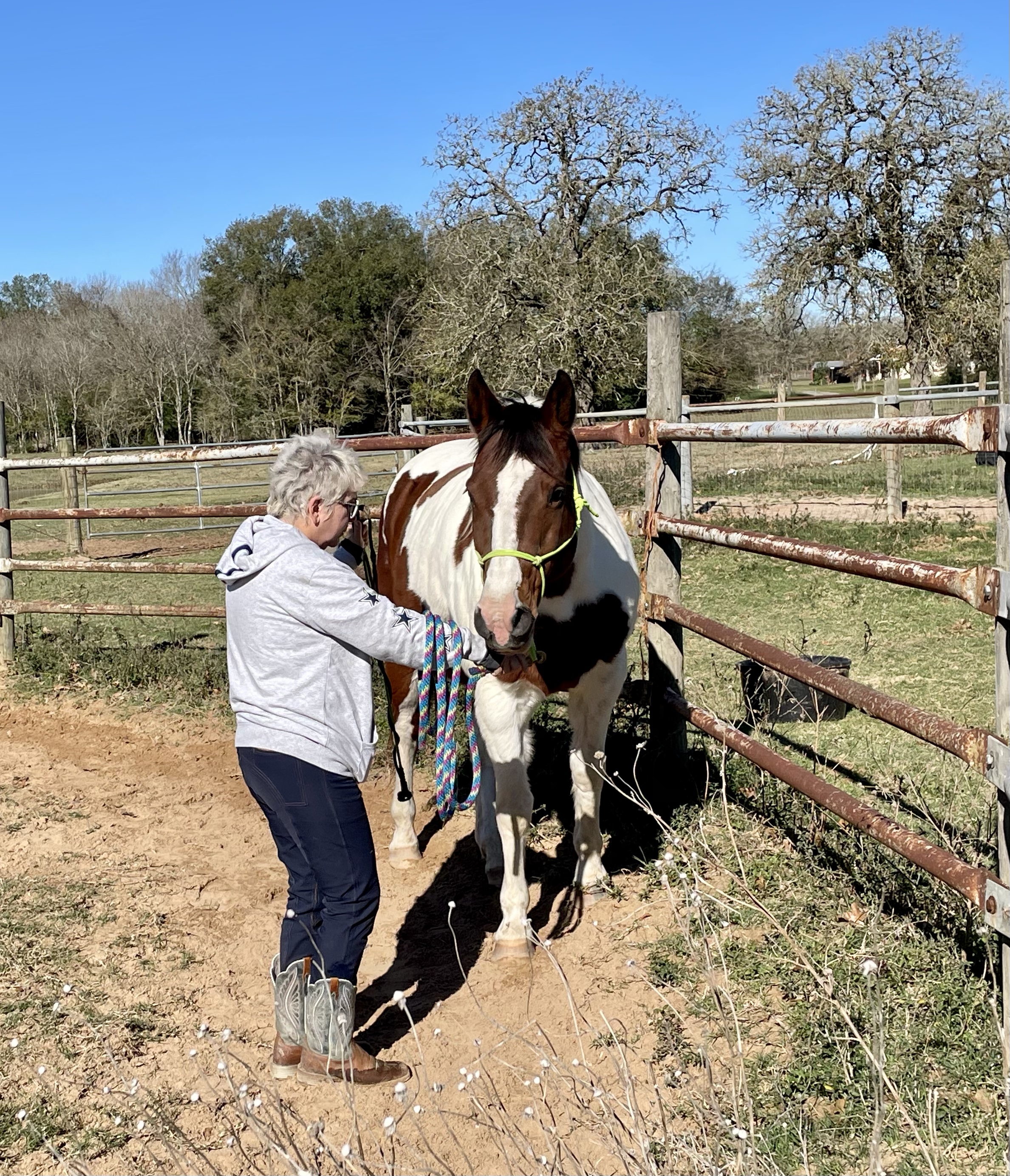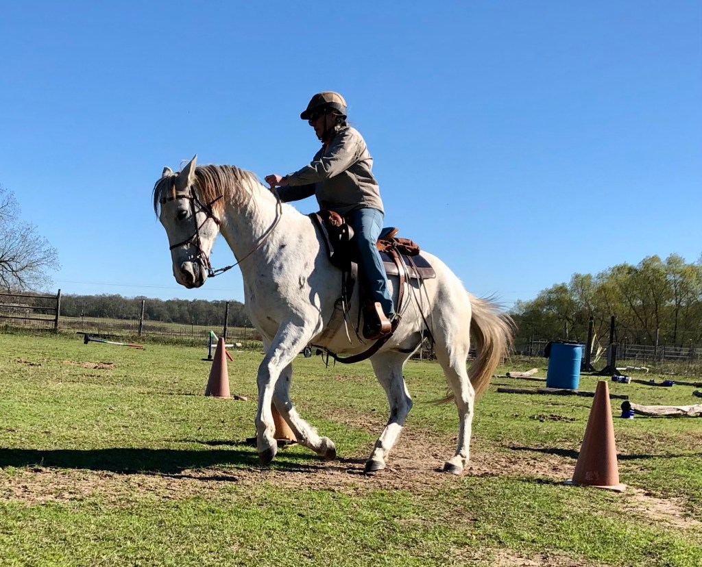 She said the way I’d been taught to do the one-rein stop and make him yield his hindquarters actually gave him power. So I will learn new things and so will he. I’m so glad we did this.