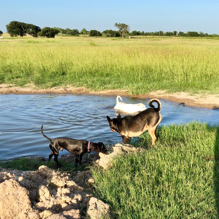 It hasn’t rained in a couple of weeks, and that’s about all it takes to turn things back to their typical summer state. Sure enough, the grass is crunchy and the cracks are out. But the tanks (ponds) have lots more water in them than usual and the creek has plenty of water in it.
