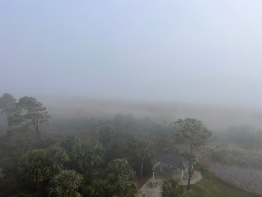 Here, it’s just been foggy. It’s been really foggy! We woke up yesterday and it looked like someone had put white paper over the windows. We often can’t see the edge of the ocean, and there’s no horizon whatsoever.