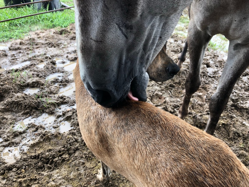 They spent a whole lot of time calmly standing nose to nose. It was so dear. I could not love these two animals more. The both are so full of love and gratitude for their nice new lives.
