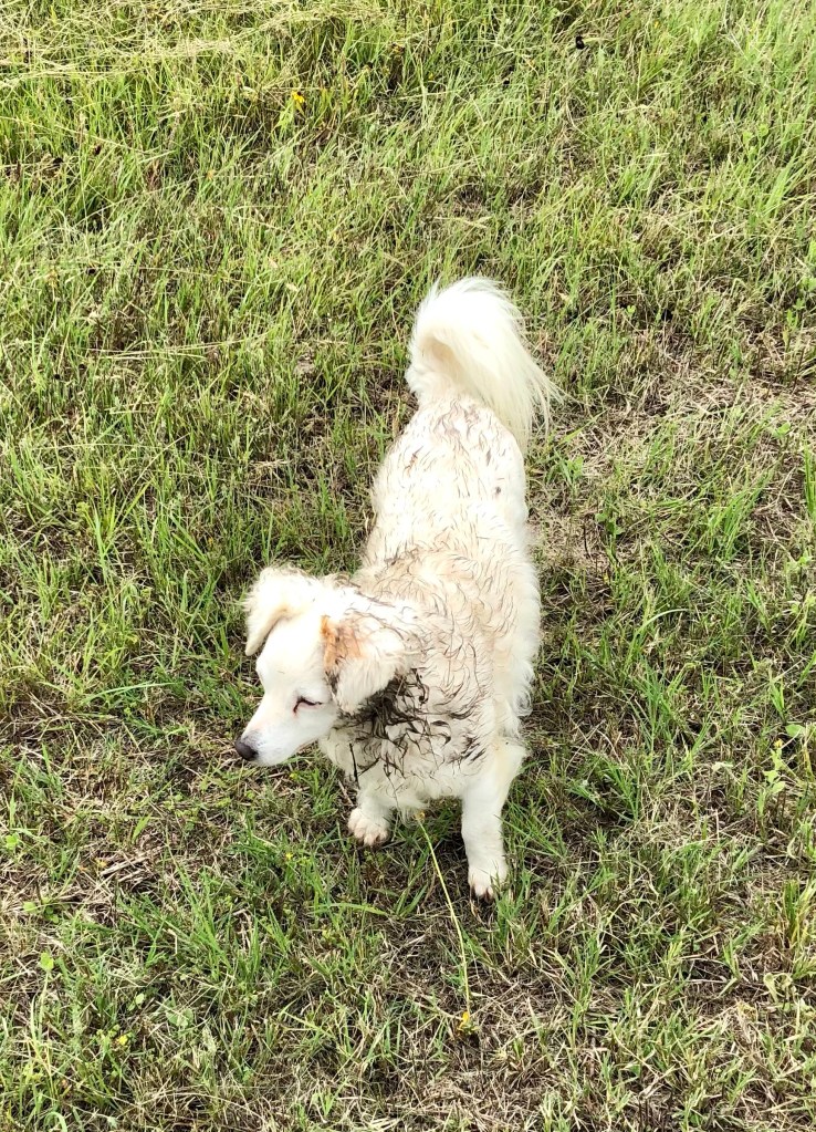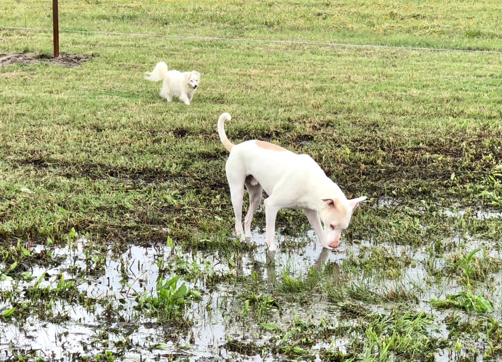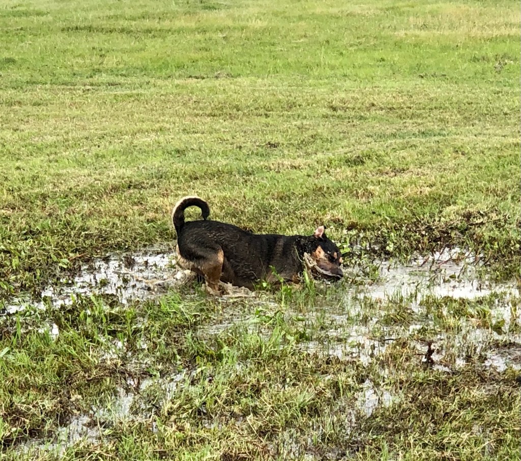 All the dogs frolicked in it, but one in particular was in ecstasy. Harvey was absolutely hilarious. He’d plop himself in a puddle, then jump up and stick his head in the water, shaking vigorously.