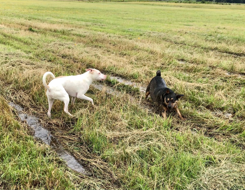 Sara introduced her to Apache and told her not to chase Big Red. Big Red also told her! There’s certainly a lot for a young dog to learn!